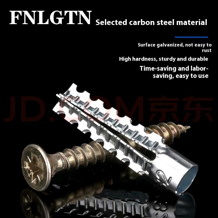 Details: Transform your home improvement projects with this comprehensive 50-set wall anchor and screw kit. Each set includes heavy-duty hollow wall anchors paired with matching screws, perfect for securing items in concrete, drywall, or wooden surfaces. The installation is straightforward - simply drill an 8mm pilot hole, tap in the anchor, and secure with the included screw. These versatile fasteners are ideal for mounting TVs, installing kitchen organizers, hanging bathroom accessories, and securing garage storage solutions. The zinc-plated steel construction provides excellent holding power, while the expanding design ensures a tight grip in various wall materials. The kit contains 100 pieces total (50 anchors and 50 screws), giving you plenty of hardware for multiple projects. Perfect for both professional contractors and DIY enthusiasts who need reliable mounting solutions for their home or workspace. Each anchor is precisely engineered to expand uniformly, creating maximum surface contact for optimal load distribution.