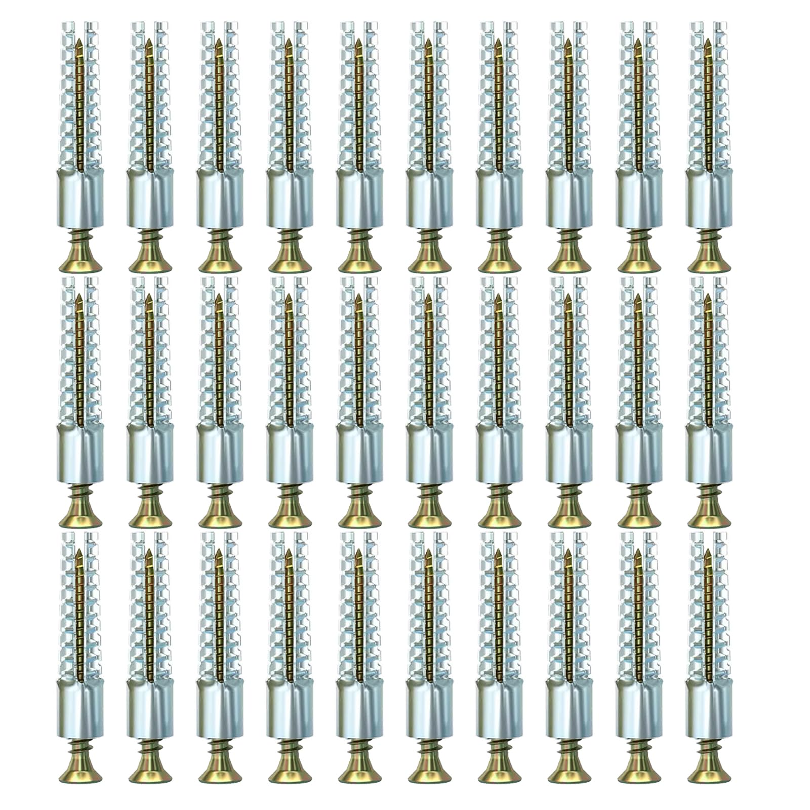 - COMPLETE KIT: 50 sets/100 pieces of heavy-duty wall anchors and matching screws for secure mounting on concrete, hollow, and wooden walls