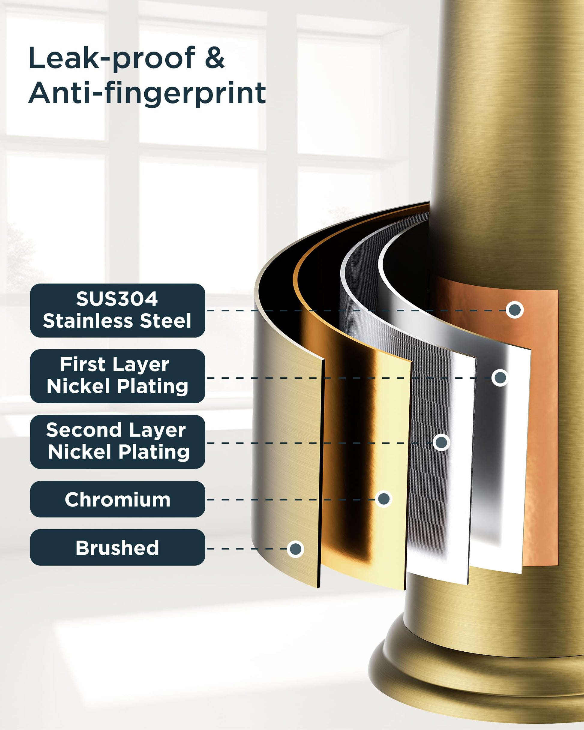- INSTALL ACCESSORIES INCLUDED-2 Water Supply hoses and anti-clogging metal pop up drain are included, no hidden costs. This brushed gold bathroom faucet 3 hole with 24" (3/8 thread) Integrated InnoFlex PEX supply line is wrapped with braided flexible stainless steel, explosion-proof and high temperature.