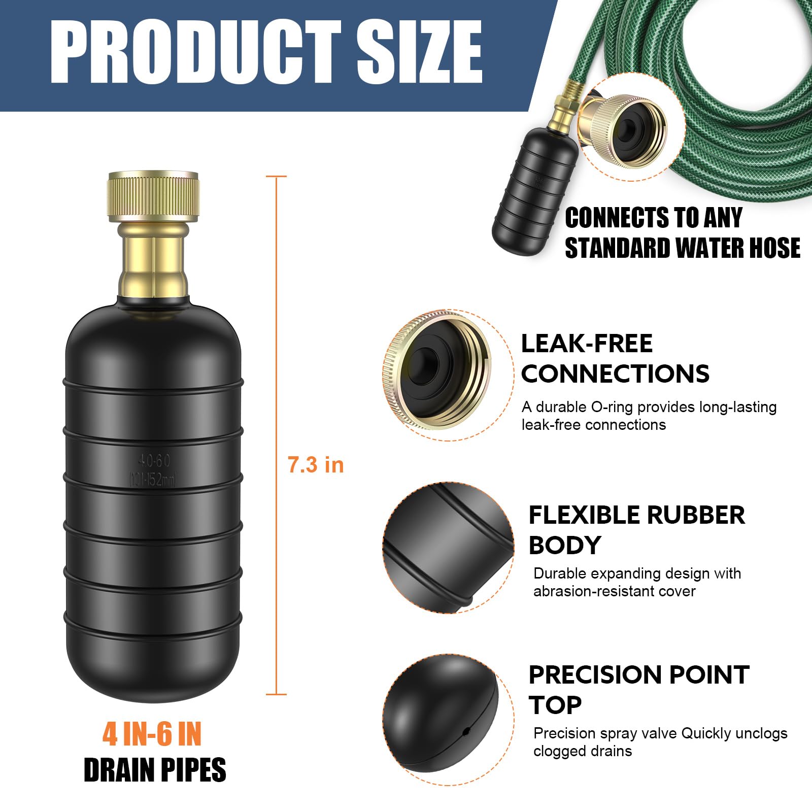 - 【Durable and Reliable】The drain cleaning bladder is crafted from highly extensible rubber, enabling it to expand and contract freely under water pressure. This design ensures long-lasting performance and durability, offering a cost-effective solution that withstands frequent use without damage