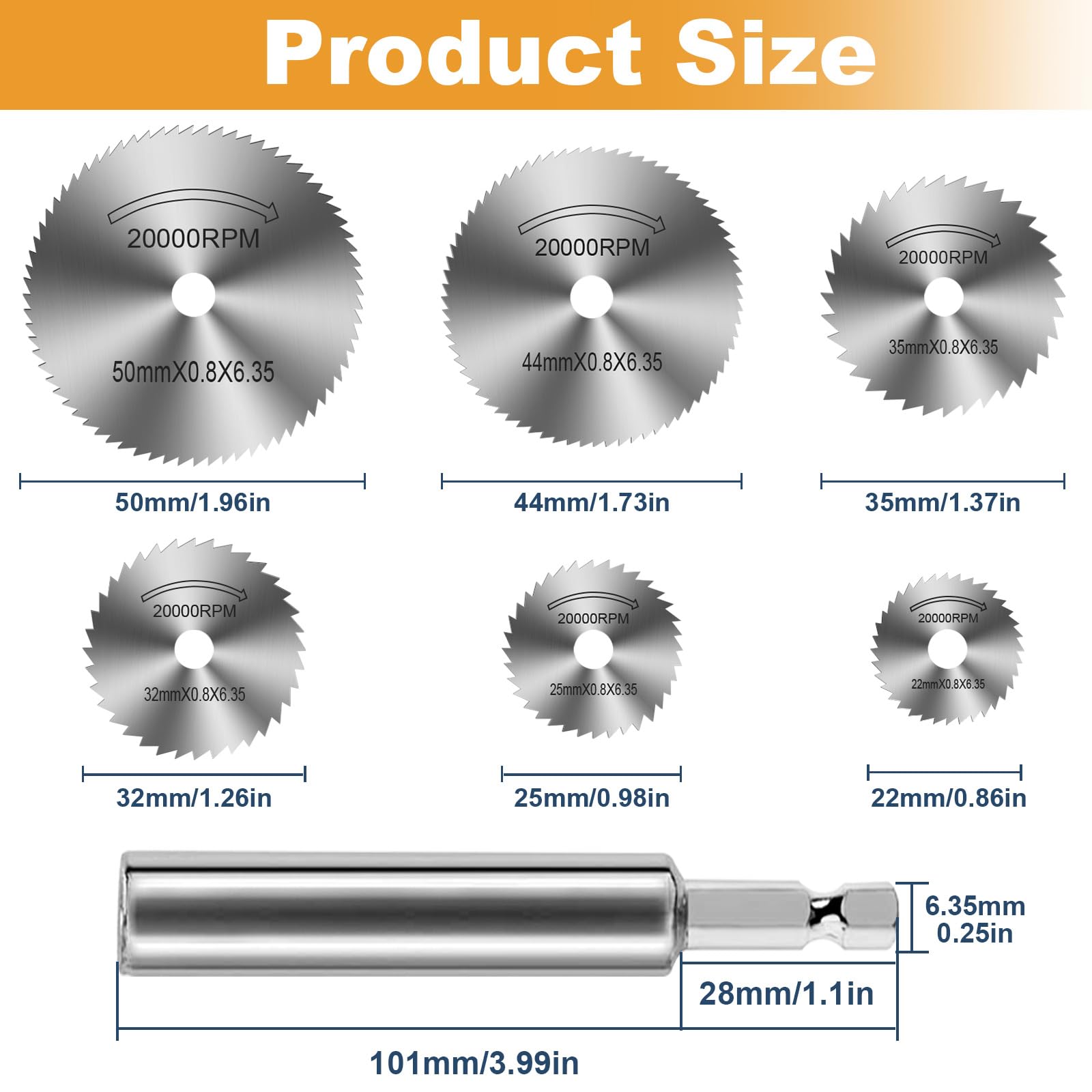 - 6 Replaceable Mini Saw Blades Included: The power rotary tool accessory kit includes 6 replaceable cutting saw wheel (22mm, 25mm, 32mm, 35mm, 44mm, 50mm) to ensure precise, sharp cuts every time, so you can work easily and efficiently all day long