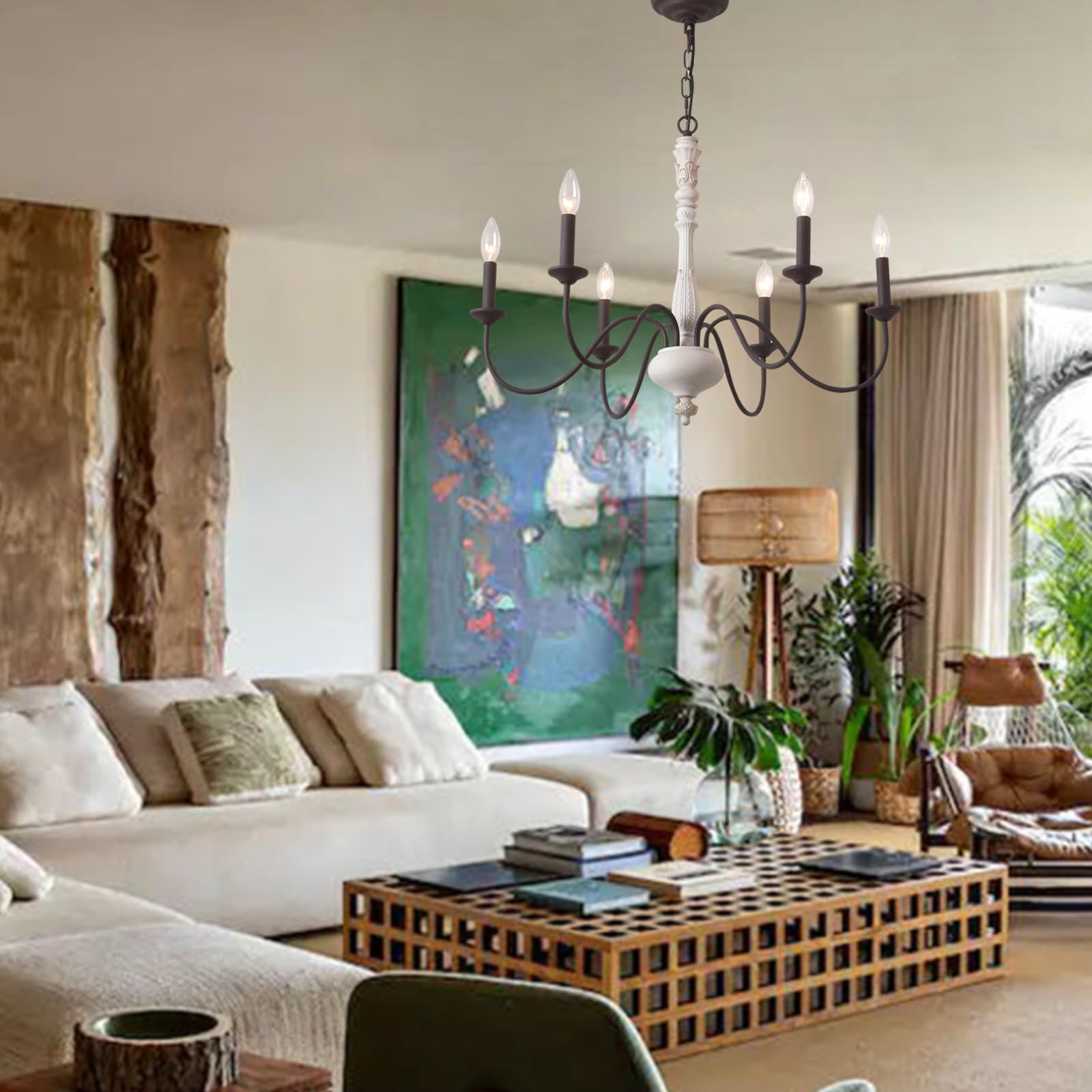 - 【IDEAL SIZE FOR VARIOUS CEILINGS】lamp body W28 in * lamp body H21 in Metal hanging chain MXA 59 in(adjustable), French farmhouse chandelier can be used on all ceilings, including flat, inclined, inclined or arched ceilings.