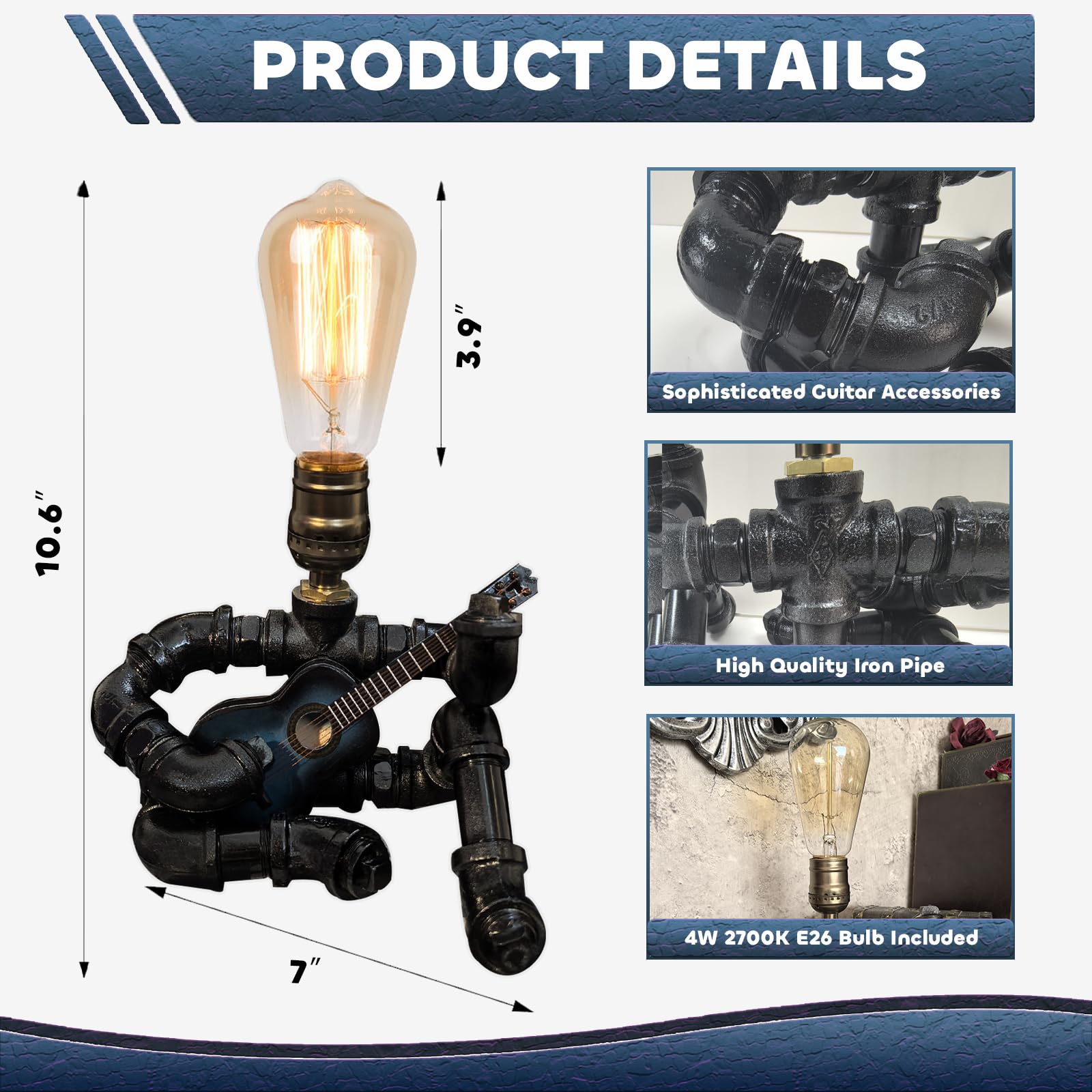 - Guitar Player Gift Ideas:The gift contains an industrial pipe lamp body, a guitar decor accessory (used to decorate the pipe lamp, contains a piano box package), a 110 Volts Edison Bulb, assembling the Edison Bulb with the plumbing lamp body, and matching the guitar decorations, it is a perfect music guitar table lamp