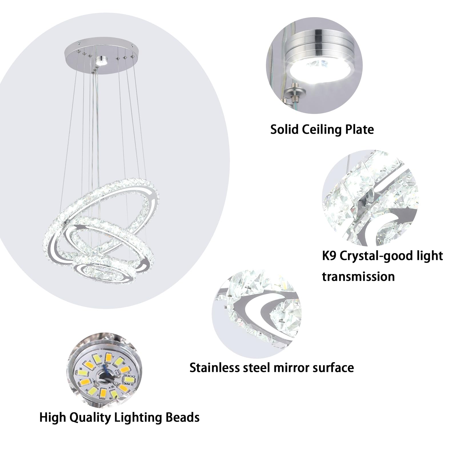 - Reliable Quality:Crafted from stainless steel and K9 crystals, this chandelier boasts durability and a bright glow. Featuring an energy-efficient LED light source, it exudes sophistication and sturdiness.