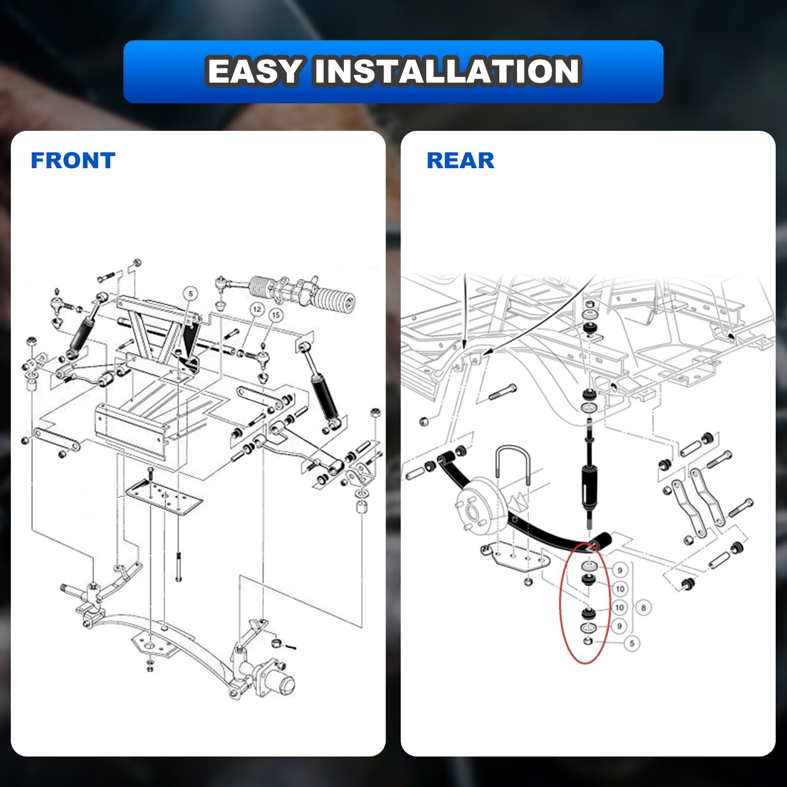 - 【FITMENT】 Rear Shocks compatible with 1981-up Club Car DS electric, 1997-up Club Car DS gas, 2004-up Club Car Precedent G&E
