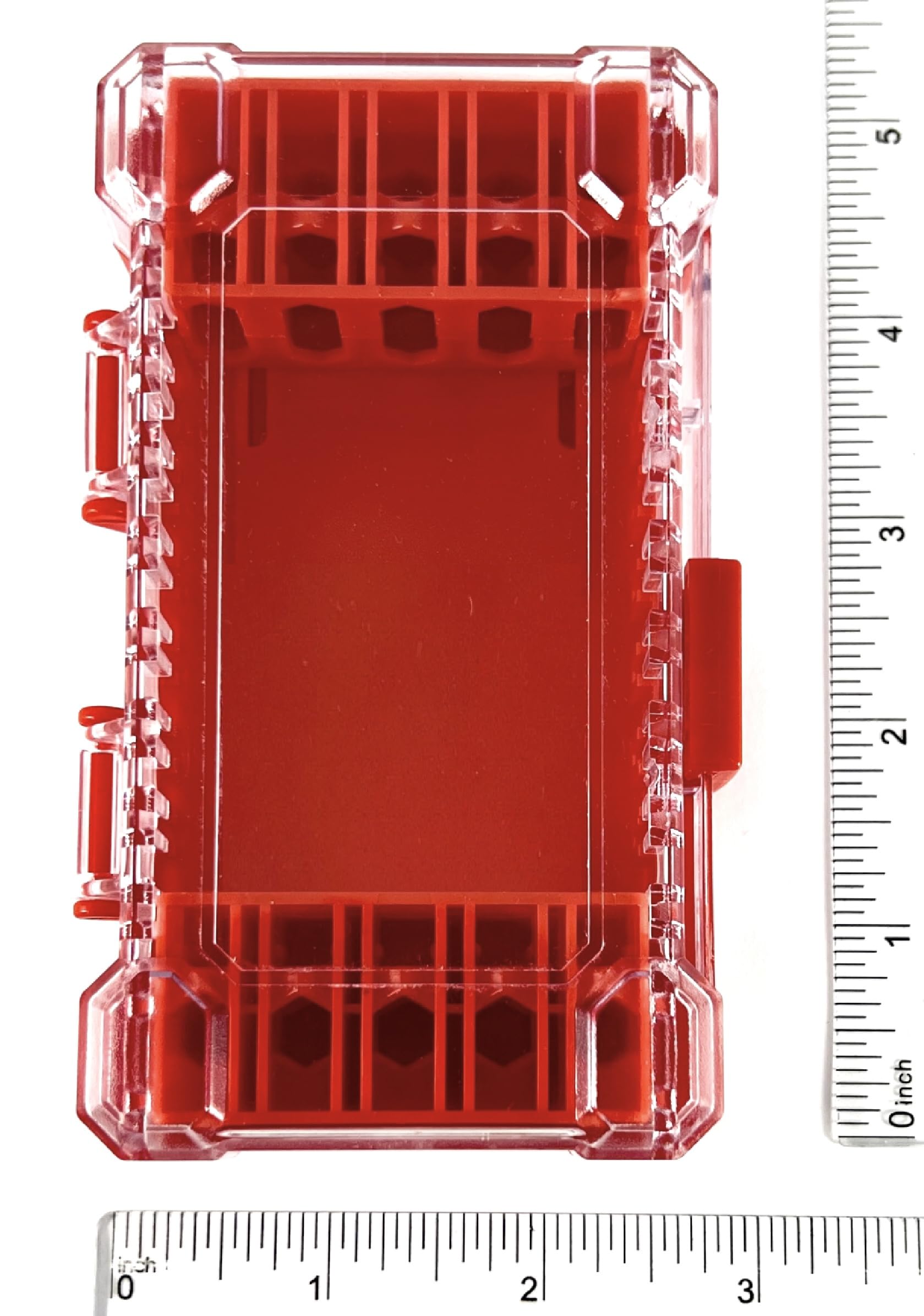 - Storage Case Size: 4.8 x 2.8 x 1.2 inch sold EMPTY. Small tool box contains inside 4 removable plastic inserts with 5 hex bit holder each one and features secure sliding latch to prevent accidentally opening