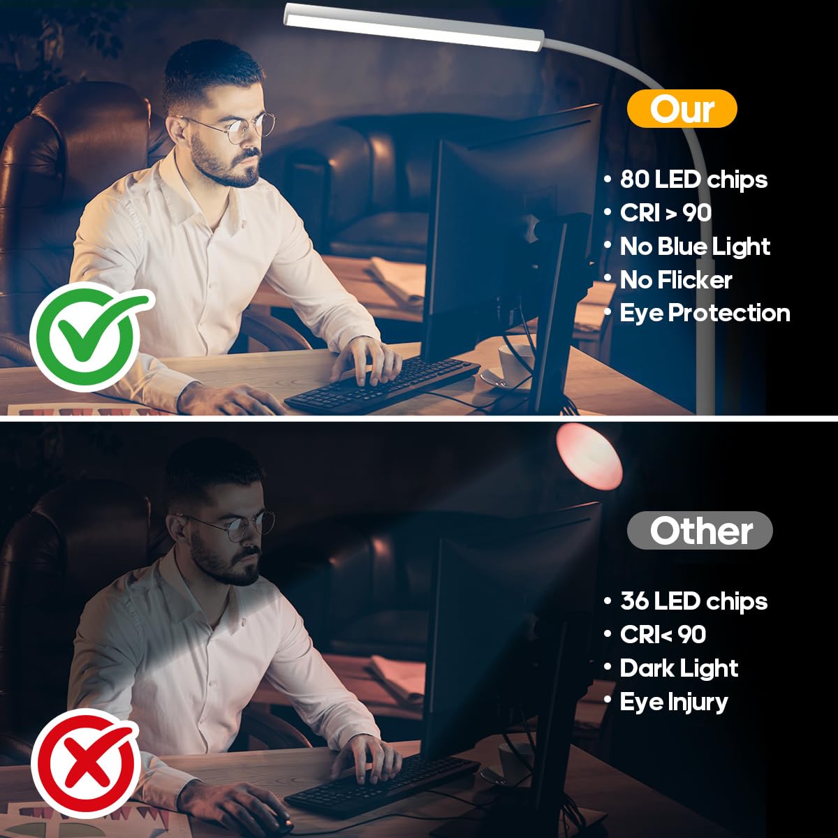 - 360° Swivel Flexible Gooseneck: The desk lamps for home office features a long flexible neck that supports 360° rotation and a sturdy clamp made of aluminum alloy at the bottom. You can make any height adjustment, multiple angles to meet your lighting needs.