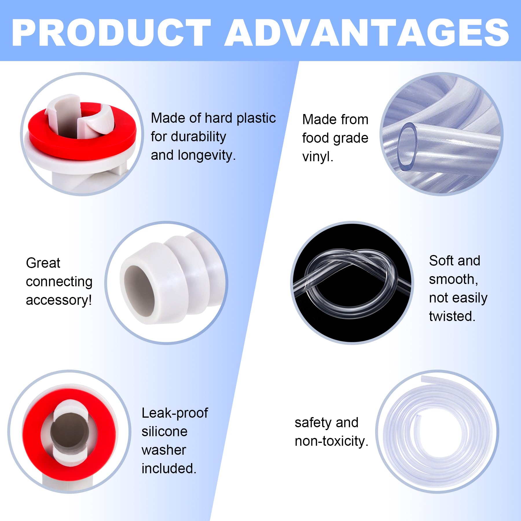 - 【Utility Kit】You will receive a portable AC hose kit which includes an 3/5'' (15mm diameter)AC drain hose connector,a 3-feet-long transparent non-toxic PVC hose, 1 washer,1 Teflon Tape,5 zip ties and 2 clamps. The clamps will help you better secure the hose in place.Return and exchange goods at any time in case of any problem.