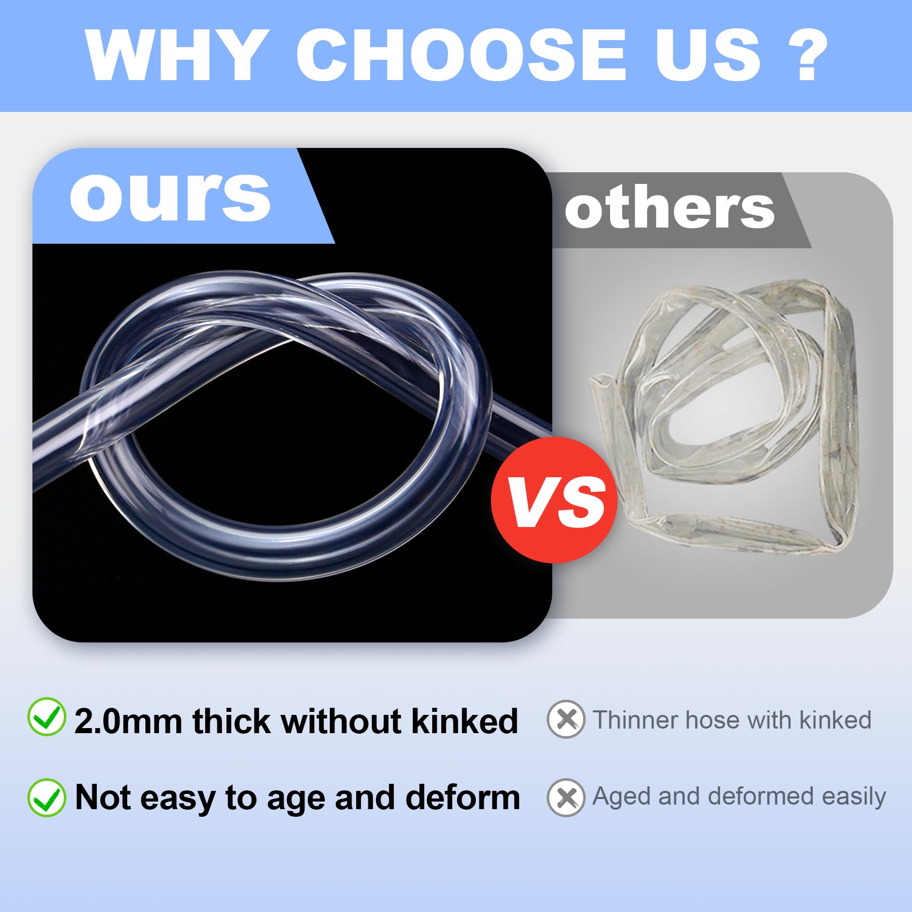 - 【2.0mm Thickened Water Hose】The thickness of the transparent drain hose is 2.0mm, which is not easy to aging and deformation. During use, the hose will not kink and affect water flow. This air conditioner hose replacement will help you solve your air conditioner drainage problem.