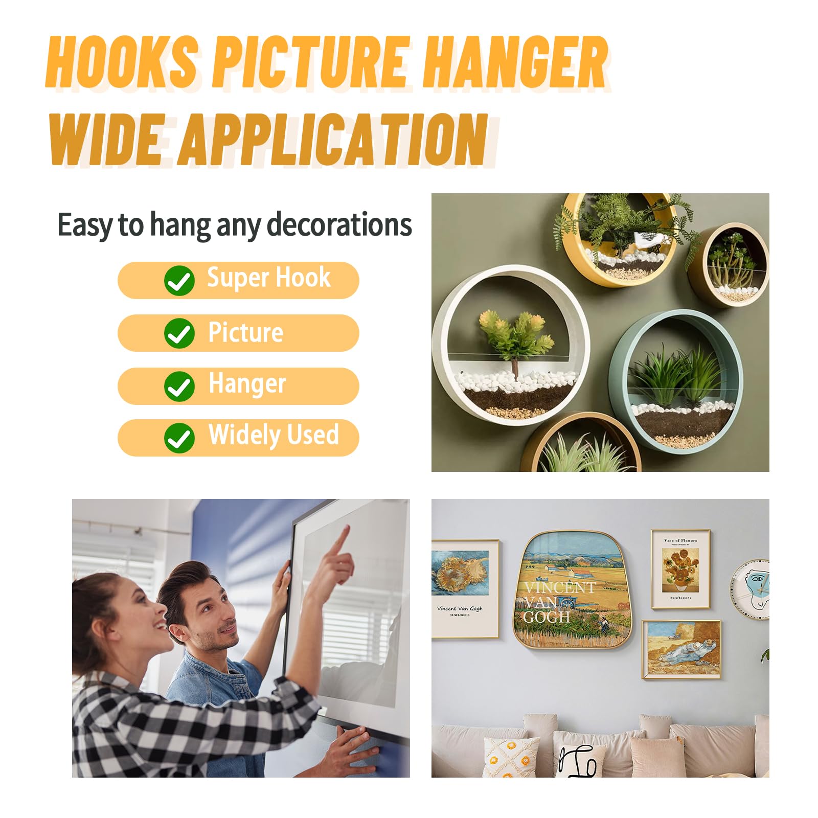 Details: The picture hangers super hook is easy to use and no tools needed:
