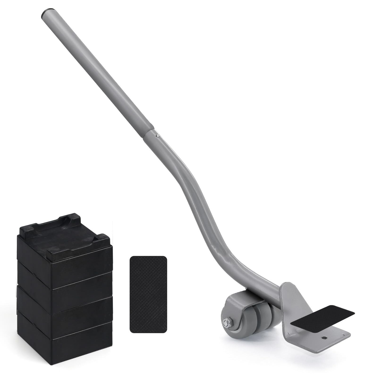 Furniture Lifter Tool, Appliance Furniture Metal Lifters for Heavy Furniture Movers Sliders Wheels Easily Safe to Move Sofa Refrigerator Washing Machine (1 Lifter Tool 4 Raise Blocks) Grey