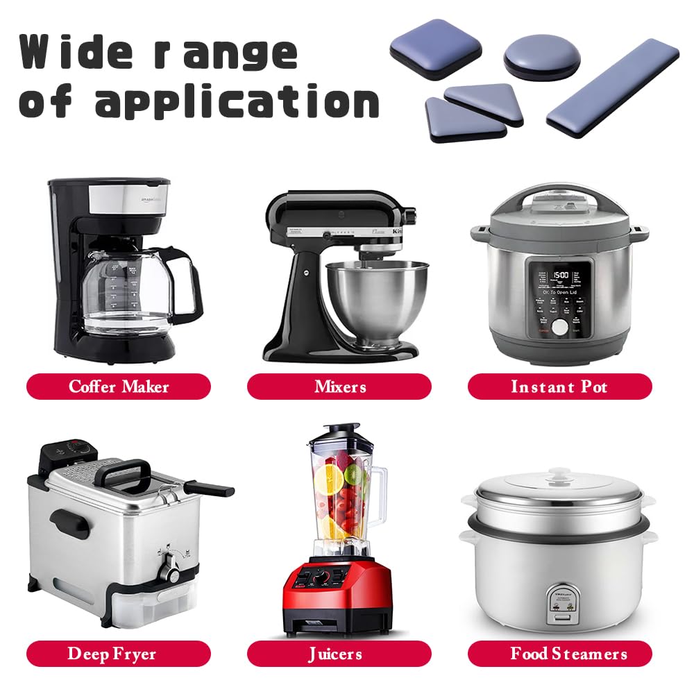 - Wide Range of Applications: Durable self-adhesive kitchen appliance slider that stick easily to glass, wood, metal and plastic. .Can be used on chairs, tables, desks, and a variety of other small furniture items and eletric appliances.such as airfryers, pressure cooker, coffee makers, blenders, cooking machines, bread machine etc. And it can also be used on other appliances, such as computer monitors, stools, chairs and cabinets, to facilitate movement without damaging the floor.