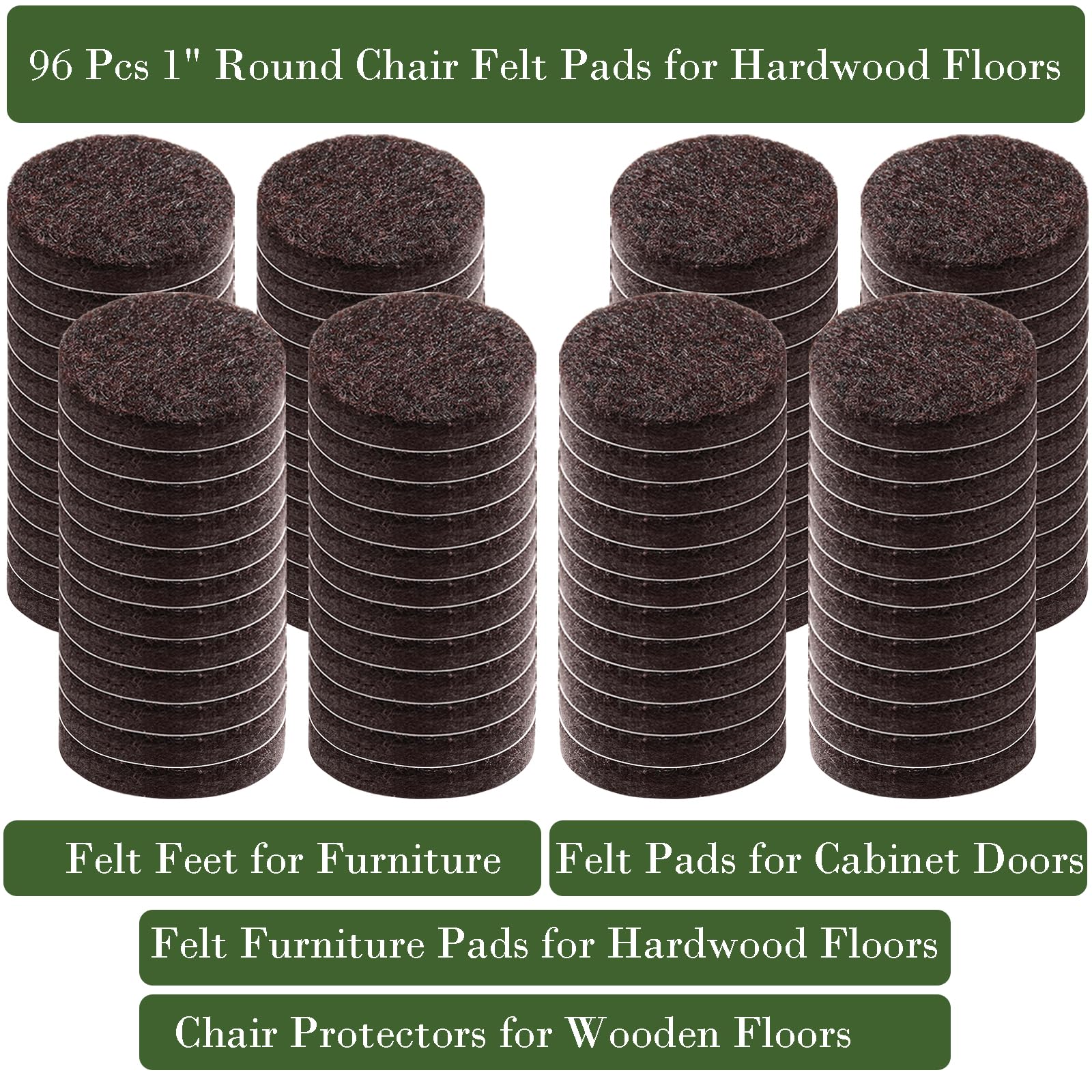 - 96 Pcs Round Felt Furniture Pads Includes: Round Felt Pads: (96) ¾" round felt pads for chair legs, Brown felt pads are fit for all your furniture and protect your floors.