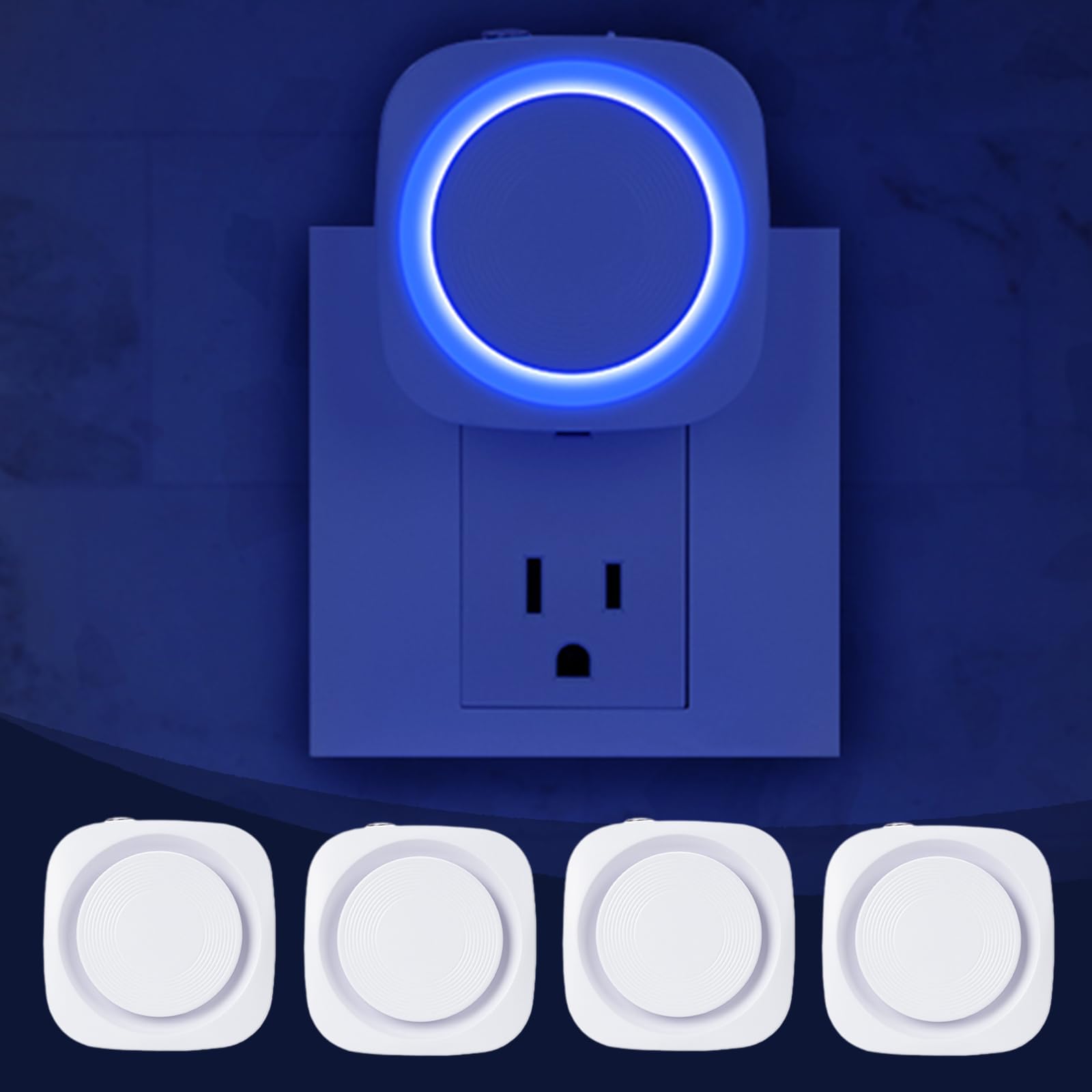 Fusunloh Blue Night Lights Plug in to Wall,4 Packs Dimmable Night Light with Auto Dusk to Dawn Sensor,Soft Glow Night Light for Bathroom, Bedroom,Hallway, Stairs, Kitchen,Blue