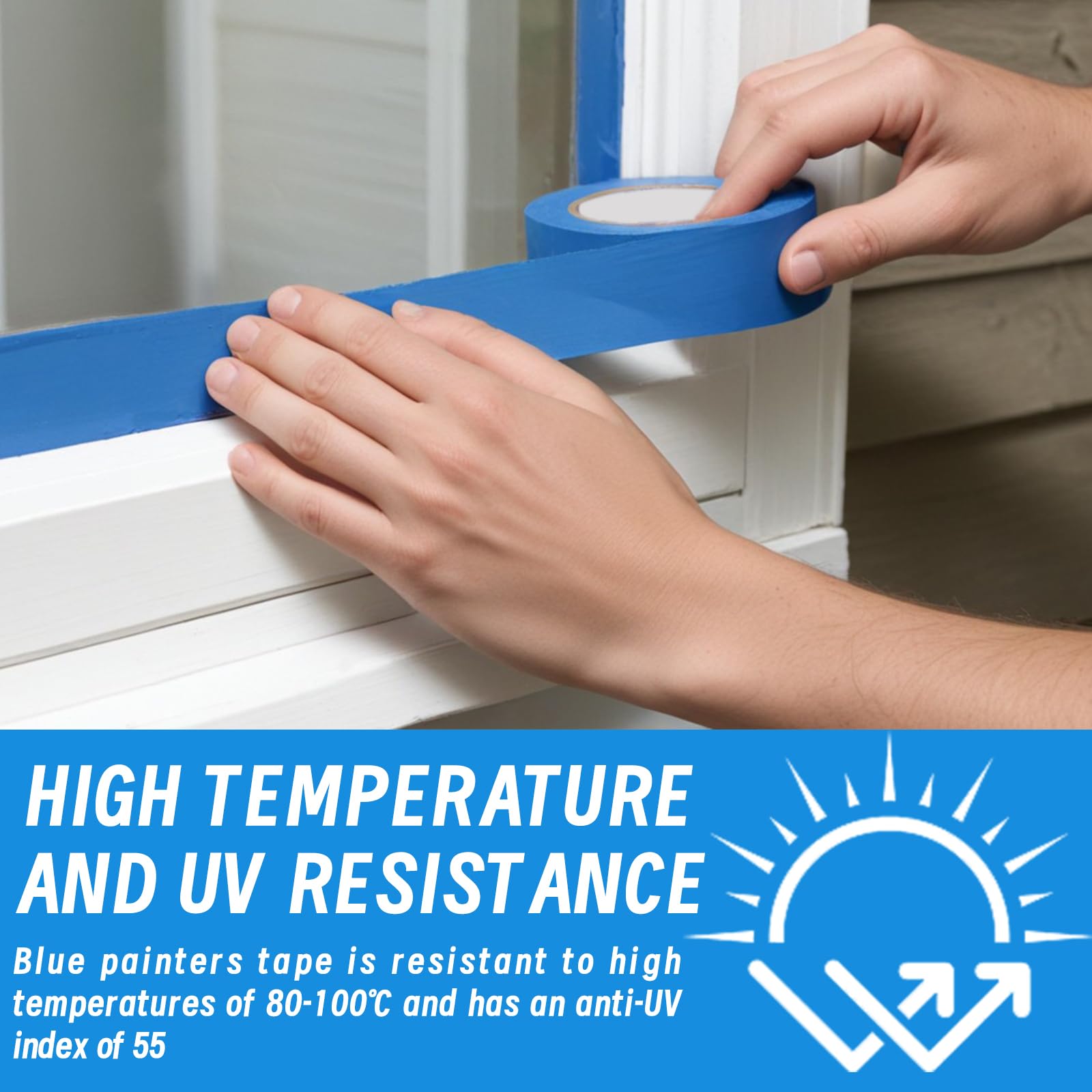 - Wide uses: Blue painters tape has the characteristics of surface waterproof, high temperature resistant and no residue. It is usually used for wall painting, partition coloring, floor trimming , DIY painting, window sealing, packaging, etc. It is an ideal choice for home decoration