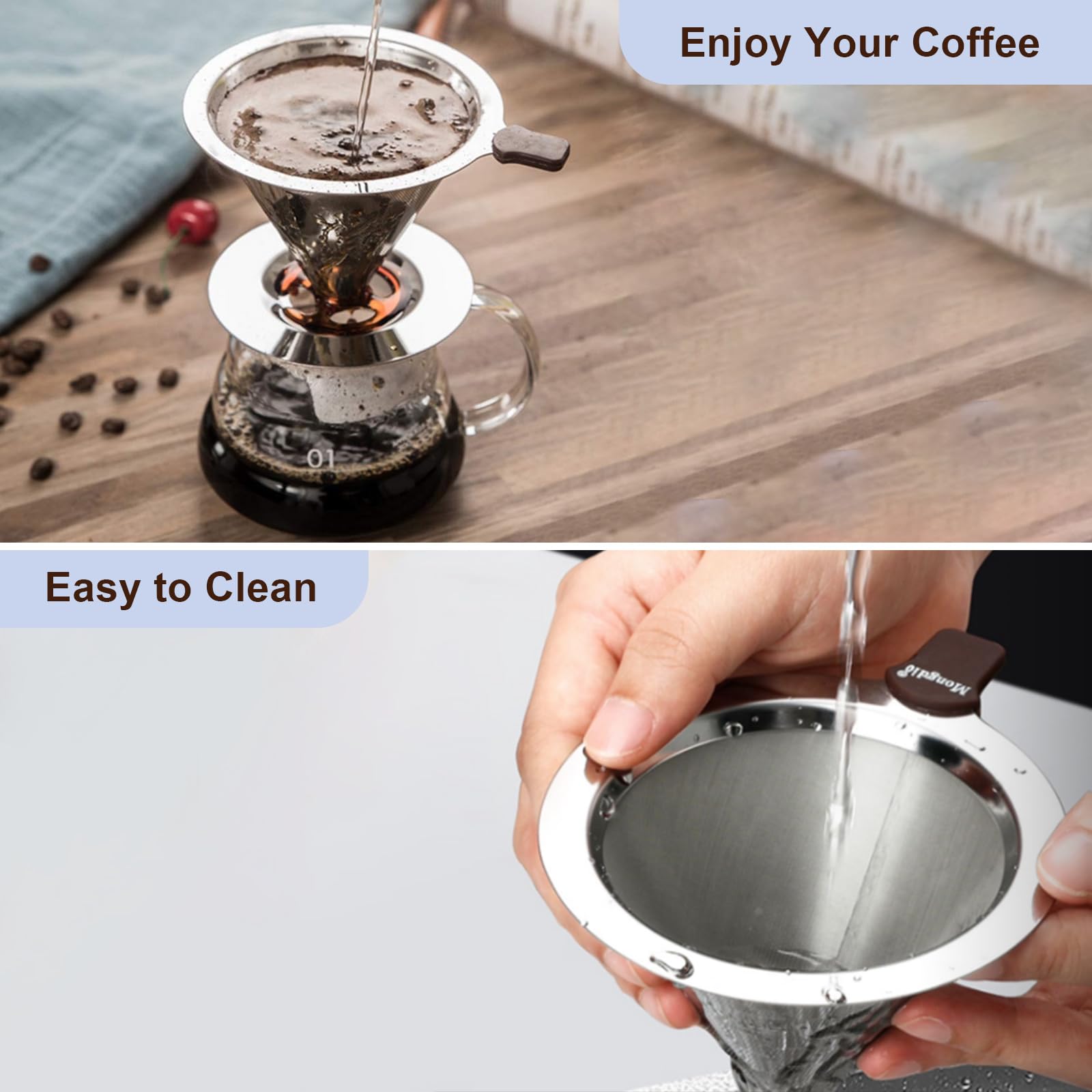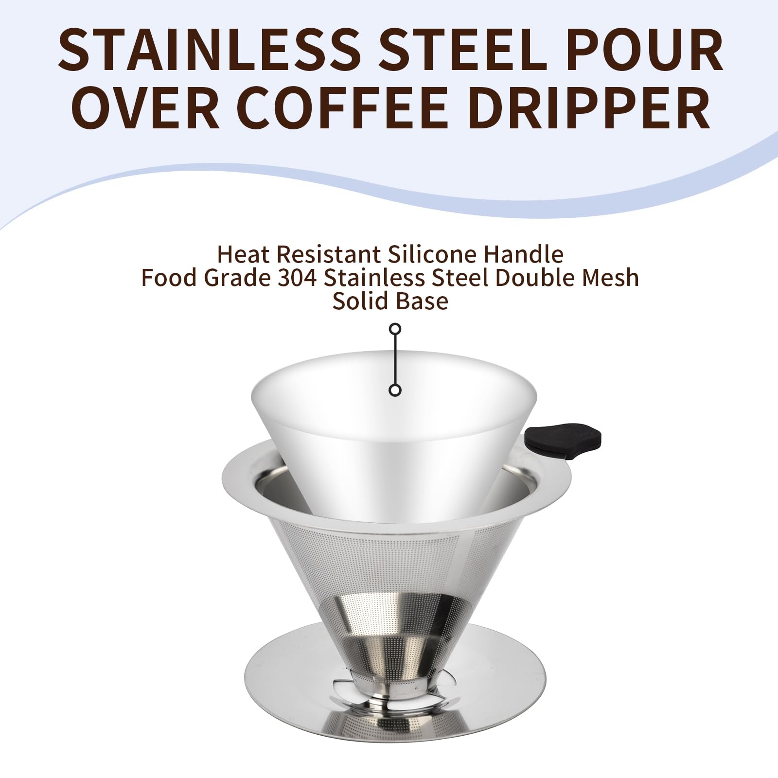Fyueenix Stainless Steel Pour Over Coffee Dripper, Reusable Fine Mesh Filter for 1-2 Cups, Paperless Coffee Maker for Home, Travel, Camping