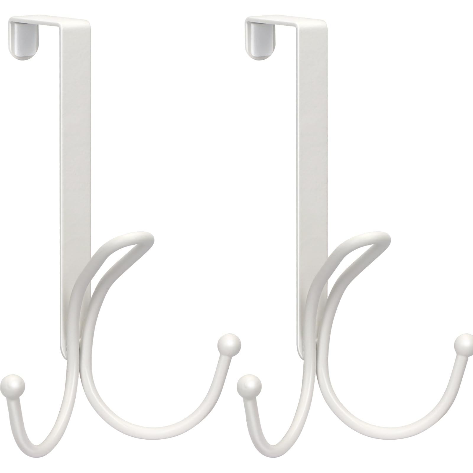 FYY Over The Door Hooks - 2 Pack Door Hangers with Sponge Pad Prevent Scratches Heavy Duty Organizer Hooks for Hanging Clothes, Robe, Towels, Hats, Bags White, Fit 1.2-1.47 inch Door