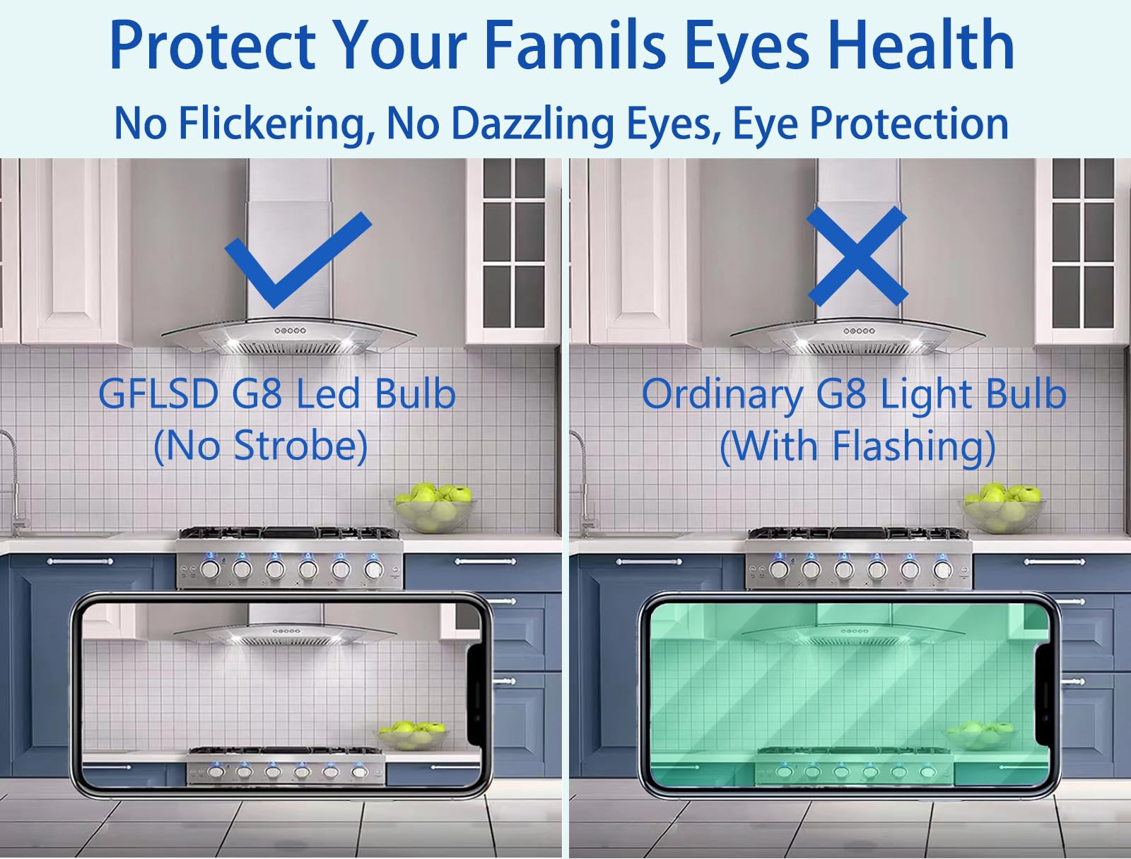 - 【Wide Application】This G8 base LED bulb can be widely used in the living room, kitchen under cabinet lighting, under counter, microwave, puck light, desk lamps, pendant lights etc, any standard G8 base.(IMPORTANT NOTE:This G8 bulb is not dimmable)