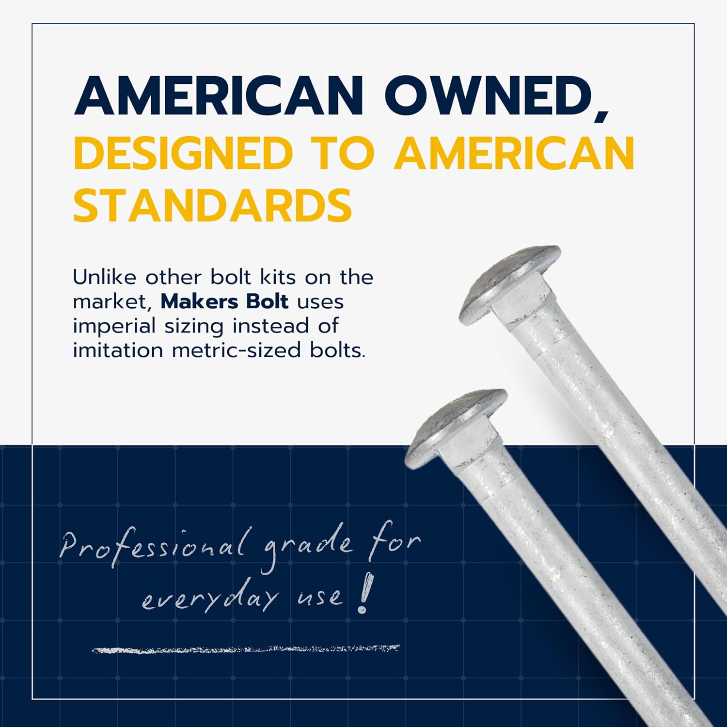 Galvanized Carriage Bolt Kit - 25 Pack 1/2" x 6" with Washers & Hex Nuts for Outdoor Use