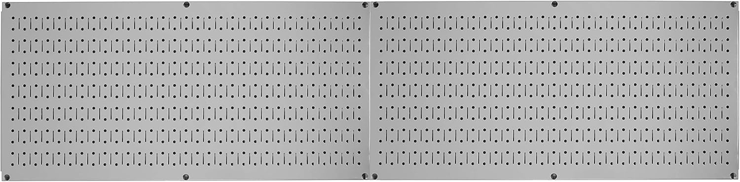 Keep your garage and toolshed organized using the sturdy 2-pack Wall Control Metal Pegboard Garage Tool Organizers. These sturdy organizers will help you keep your tools and equipment in order for a more efficient workspace. These hanging board systems will completely transform the way you organize your workshops or sheds. You will never have to scramble around looking for that wrench or saw you need. Constructed from durable, powder-coated metal that will not warp, fray, or crack, the pegboards are great for long-lasting, heavy-duty tool storage needs. With the included mounting hardware, simply mount the boards anywhere on your wall and organize the pegs and other accessories in whichever order works best for you. The pegboard's patented flush-with-the-wall mounting flange can hold more weight than imitator metal pegboards and offers a much more secure attachment to the wall. Not only does the board accept Wall Control brand pegs, but it also accepts conventional 1/4-inch pegboard pegs and magnets, providing maximum versatility. It's a simple yet effective way to expand your storage space and keep everything neatly organized. Measures 0.75 inches long, 32 inches wide, and 16 inches tall. Simply mount these boards on your wall and expand your storage system. Efficiently declutter your workspace with the space-saving Wall Control Metal Pegboard Garage Tool Organizer.