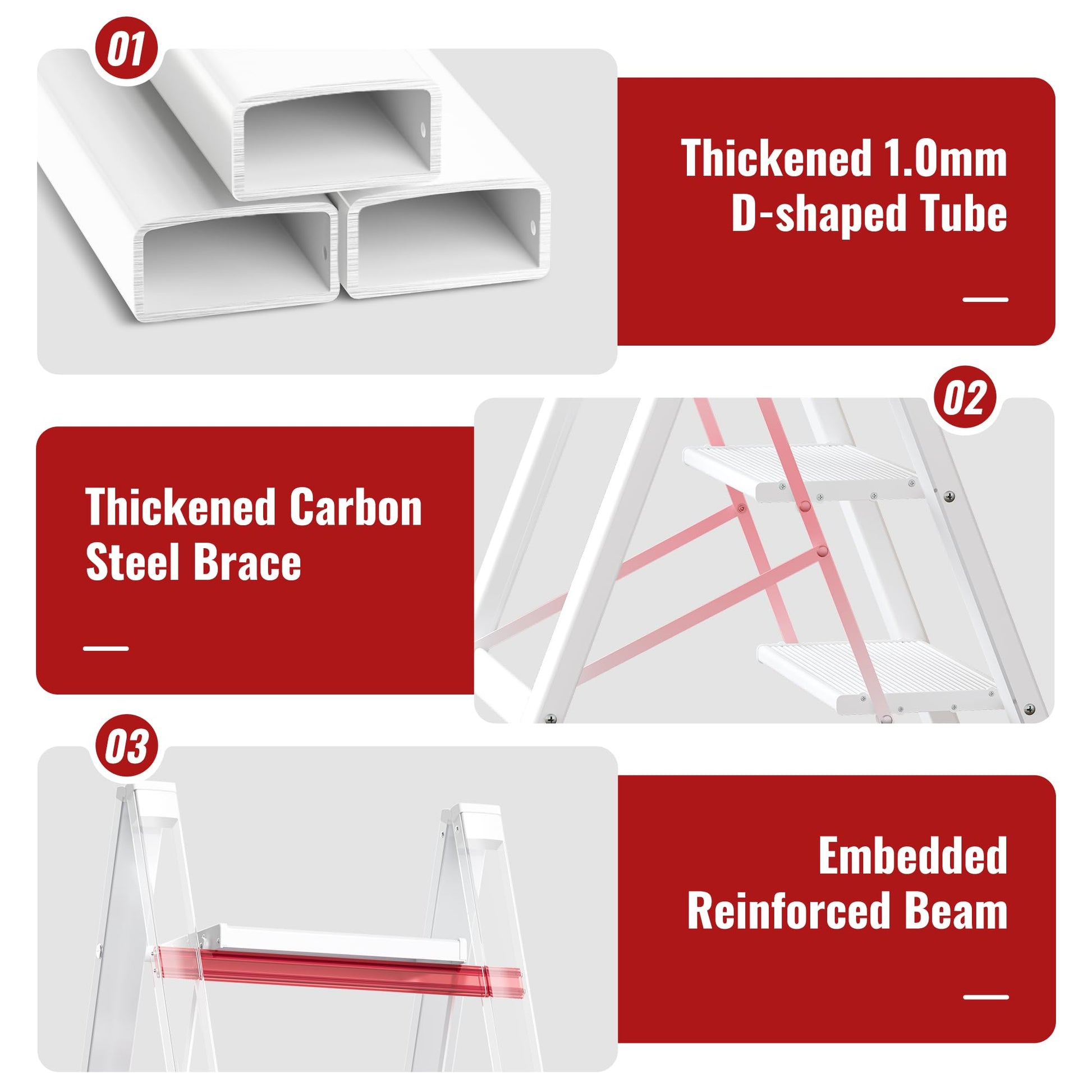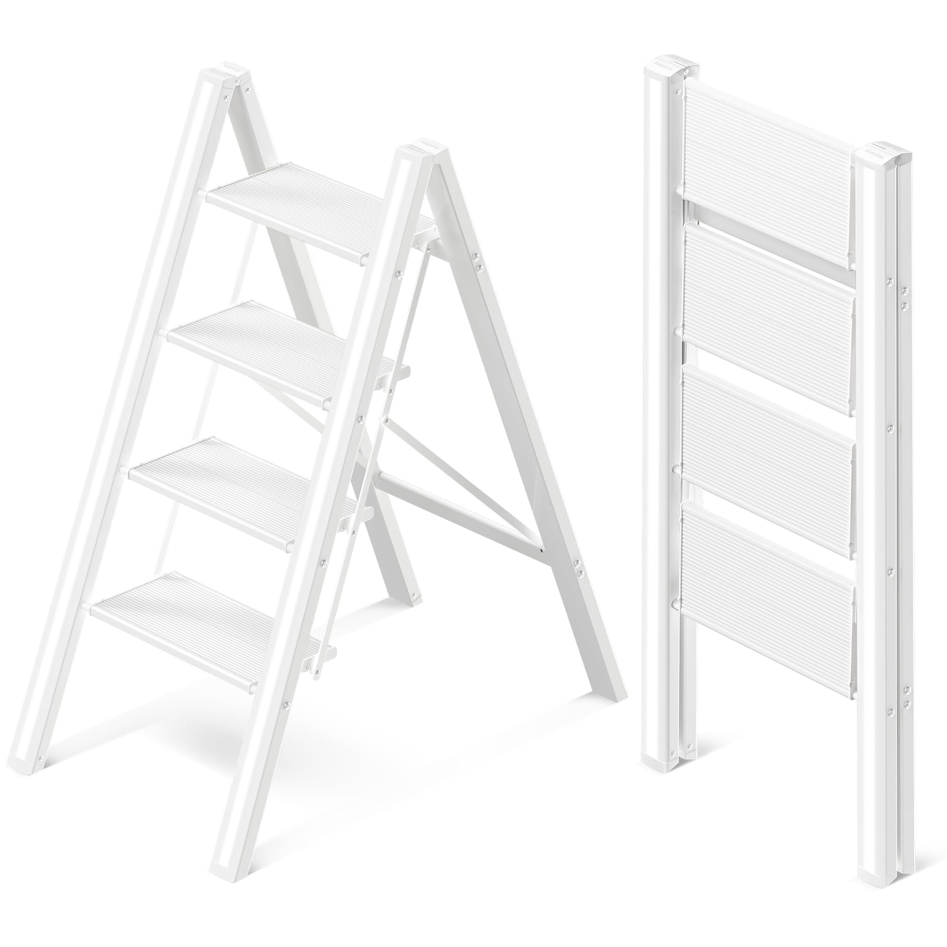 GameGem 4 Step Ladder, Aluminum Folding Step Stool with Anti-Slip Sturdy and Wide Pedal, Lightweight Portable Stepladder for Home and Kitchen Use, Cream White, 330 lbs