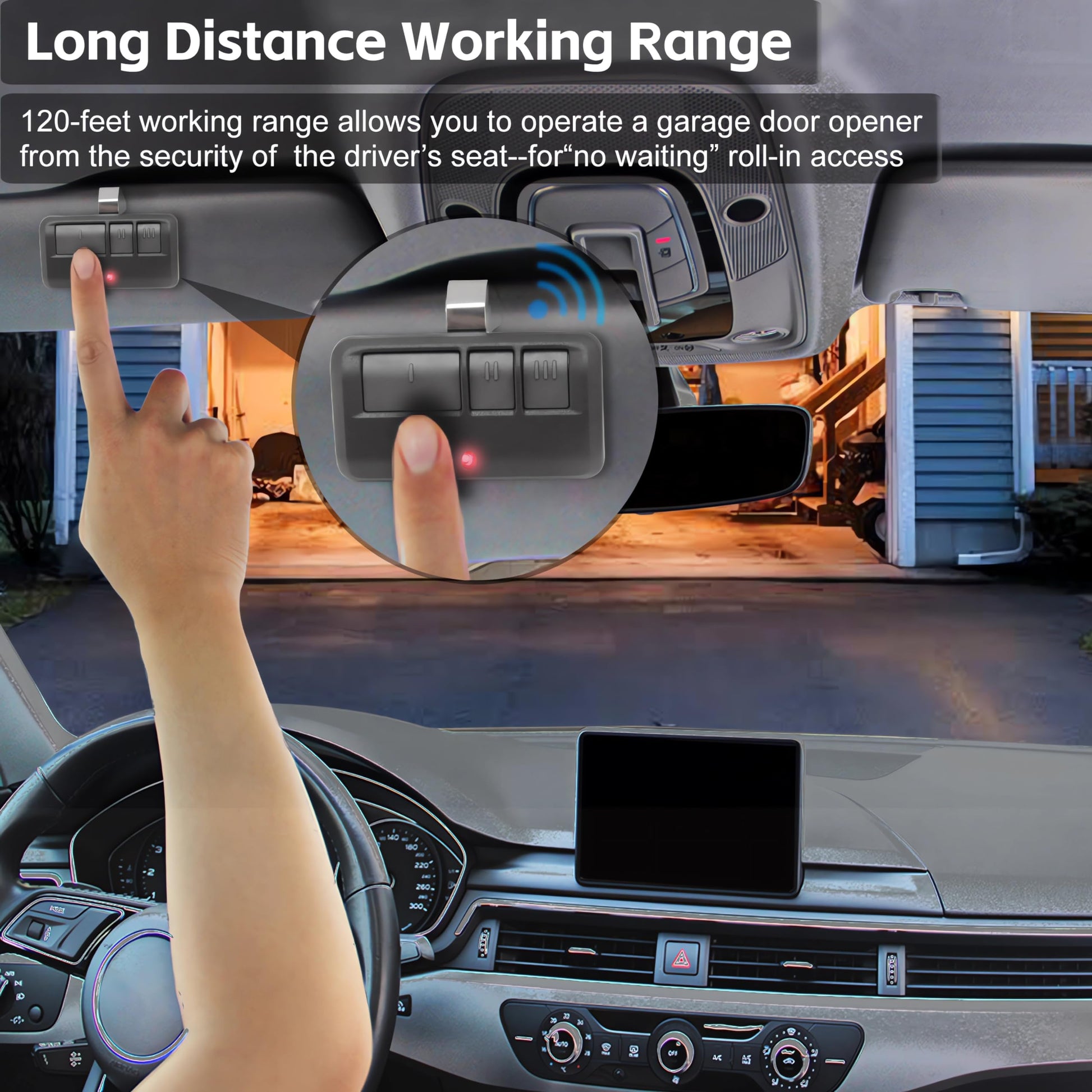 - 3 channels – 3 button design allows control up to 3 garage door openers at once, which eliminating the trouble of carrying multiple remote. Acvoce garage door opener remote works within 120 feet from the garage door opener for “no waiting” roll-in access.