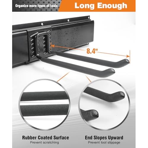 - Easy Installation:You just need to mount the tool organizer to the wall with anchors and screws and ready to use, all hooks are removable and easily adjusted to any position on the rail