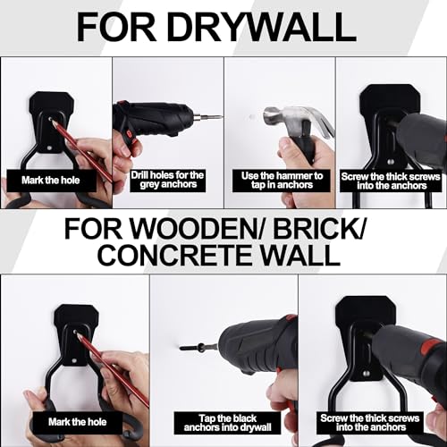 - ¡¼EASY TO INSTALL & USE¡½The line trimmer hanger Hook can be quickly and neatly installed and removed on drywall, concrete, brick wall, wooden wall, and more. Follow the installation manual, you can easily install the weed trimmer wall hanger. This Juformin weed eater rack comes with two pre-drilled holes and fixing screws & anchors for easy installation, fits most wall surfaces with good flexibility