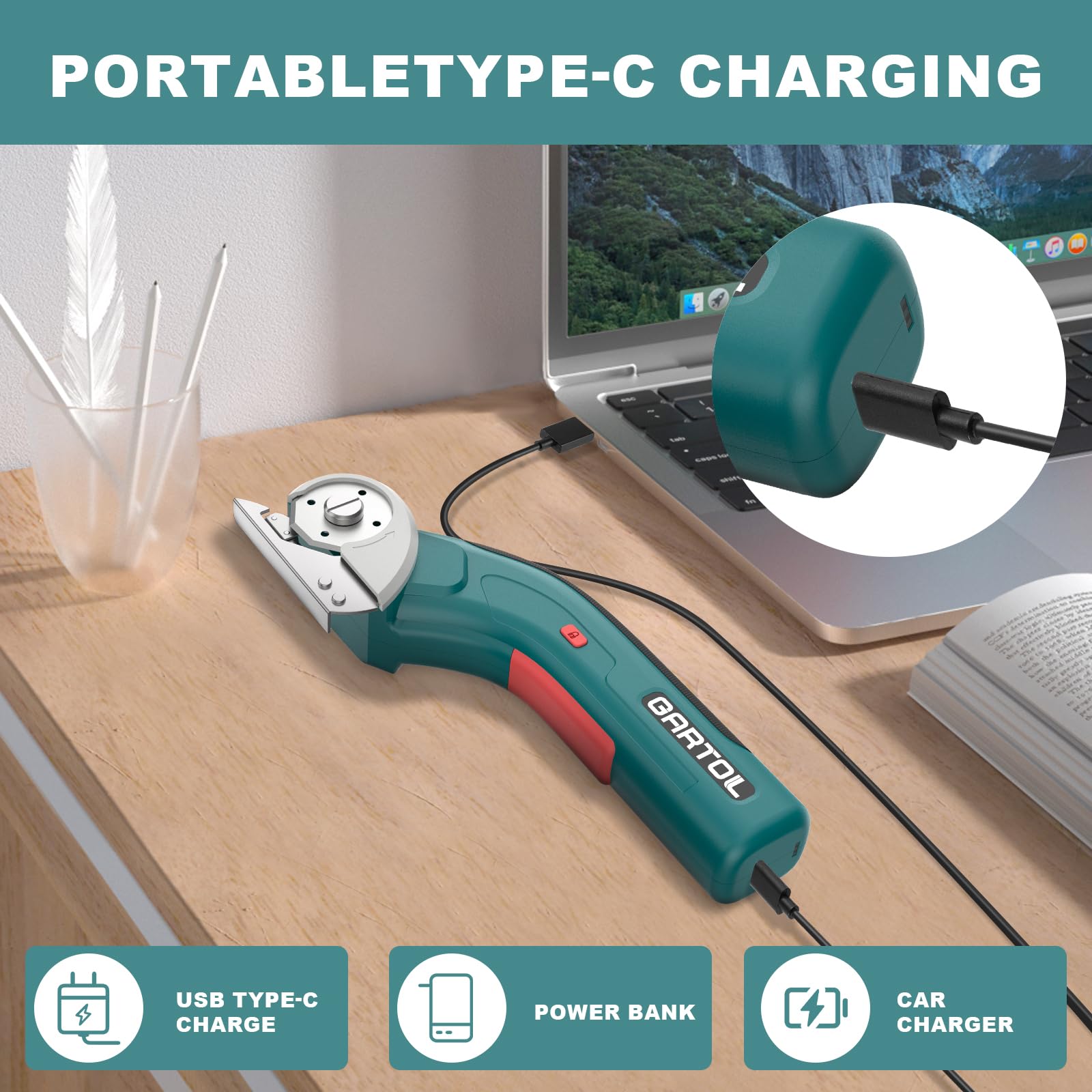 GARTOL Cordless Electric Scissors – Rechargeable Rotary Cardboard Cutter with USB Cable, Safety Lock, Portable Powerful Box Cutter for Fabric, Leather, Carpet, Sewing, Crafts, DIY