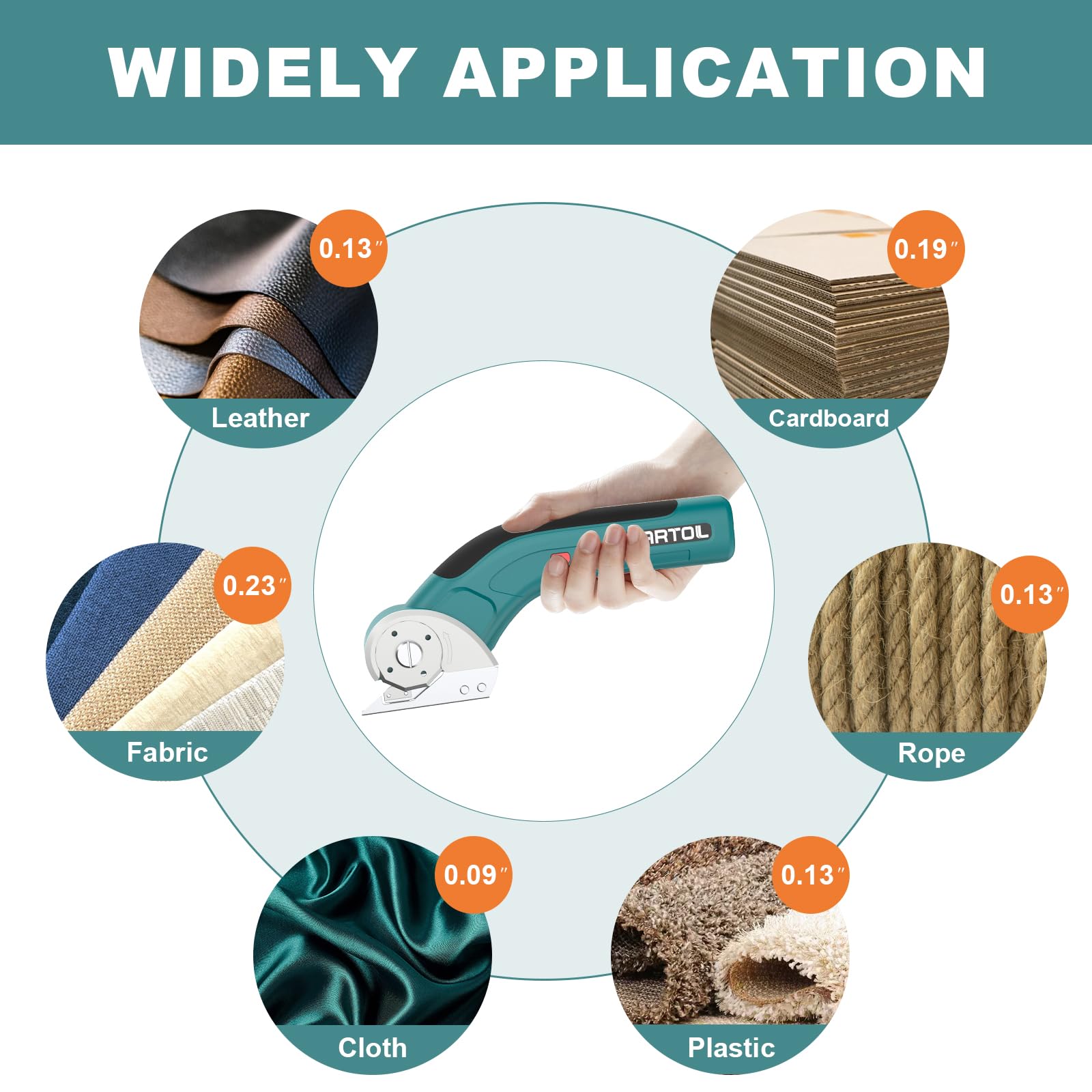 - [Say goodbye to hand strain and uneven cuts!] The GARTOL Cordless Electric Scissors are your perfect crafting companion, meticulously designed to handle a wide range of materials with ease. Featuring a robust 11,000 RPM motor, this high-performance tool slices smoothly through fabric, leather, cardboard, and plastic, allowing you to focus on bringing your creative ideas to life—whether you're sewing, crafting, or tackling a DIY project.