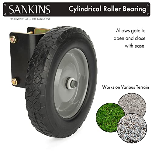 - ¡¼Gate Helper Caster¡½The 8" heavy-duty gate wheels enable the gate to open and close freely, effectively preventing the gate from sagging, drag on the ground, keeping the fence line level. The wheels roll smoothly, which can help save the force when pushing the gate.