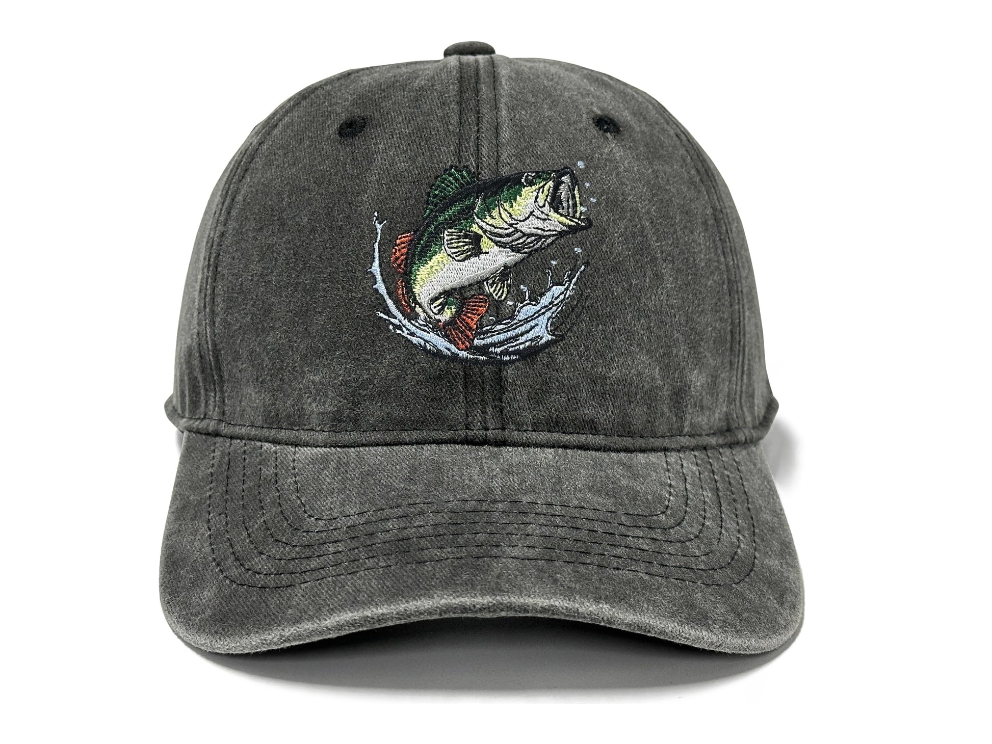 GDIQ Bass Fishing Hat, Gifts for Fisherman Angler Fish Lover, Boating Camping Outdoor Embroidered Baseball Cap, Adjustable Washed Black Dad Hat