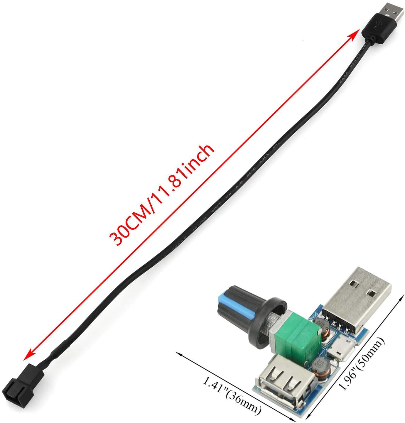Gebildet 3pcs USB to 3pin/4pin PWM 5V USB Sleeve Fan Power Adapter Cable with USB Fan Governor Speed Control Knob ON/Off Switch