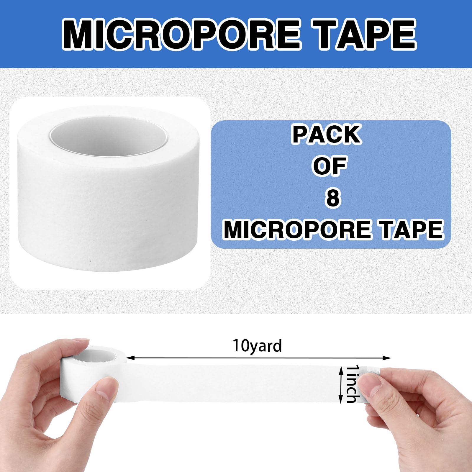 - Convenient Packaging: the set includes 8 rolls of 1 inch wide microporous tape, each roll measuring 10 yard in length, along with 2 tape dispensers; Keep one set in your portable first aid kit and another at home, while the rest can be saved for future use