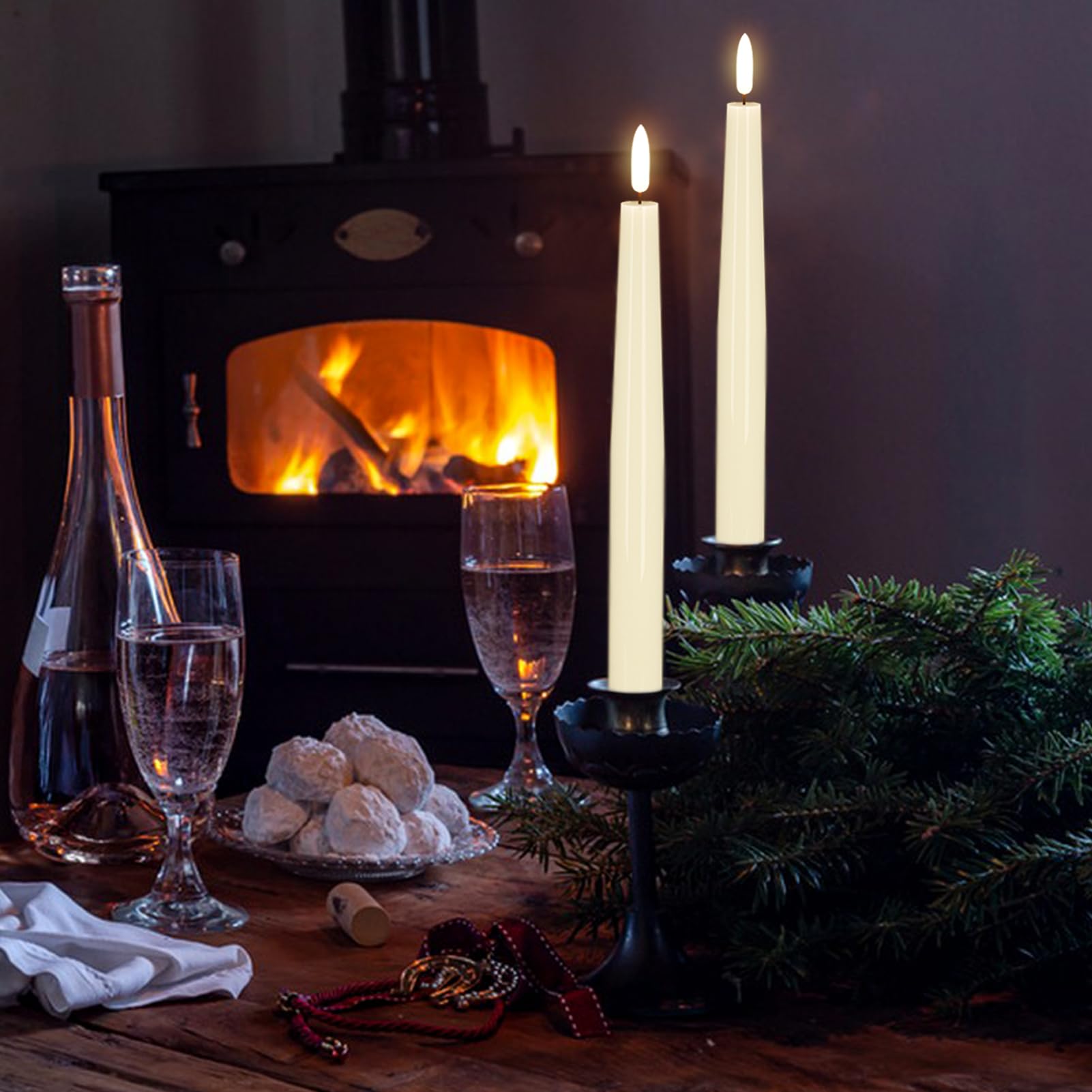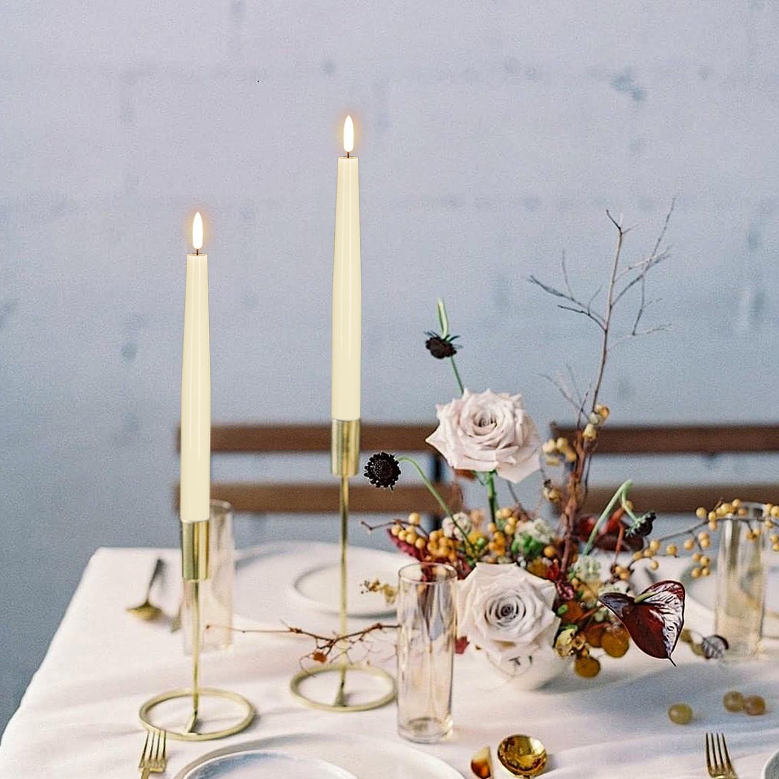 - REAL WAX COATING & 3D WICK: With realistic 3D flicker flame, these flickering tall candles perfectly imitating the real flame, emitting a nature flickering warm light like real candles. These fake long taper candles are made of real wax, led candlesticks with the real wax coating makes it feel real (but you need to store it carefully during the hot summer to avoid high temperatures and direct sunlight)
