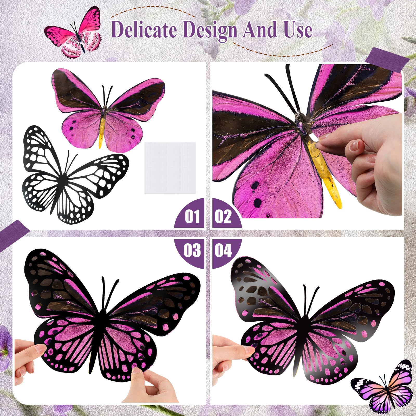 - Charming Gift Options: large 3D butterfly wall stickers take classic purple and rose red colors, which can bring you a pleasant visual effect, you can share them with friends, family members, adding charm to their living space
