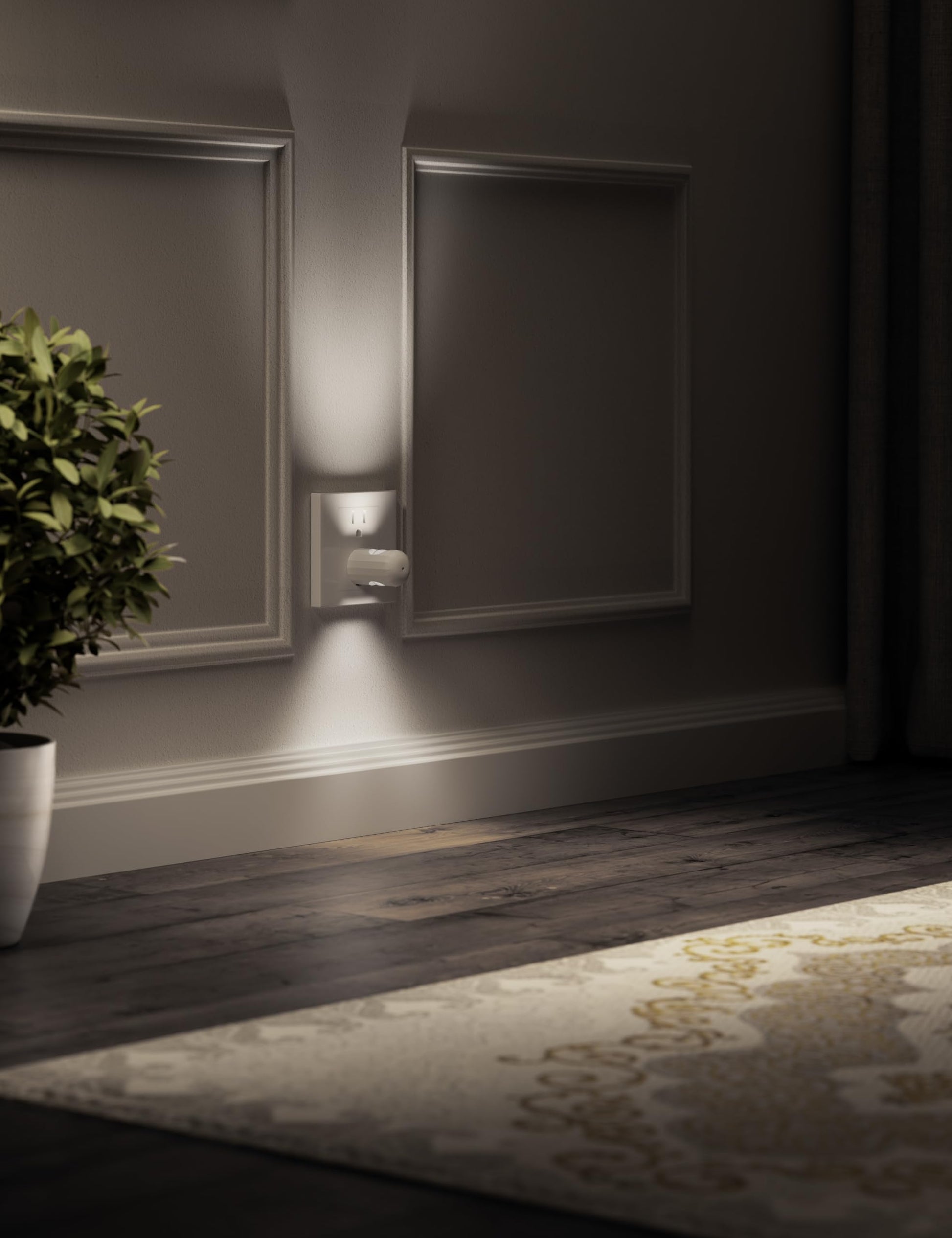 - Space-Saving Design: The compact and sleek light fits seamlessly into any standard wall outlet without obstructing the second socket.