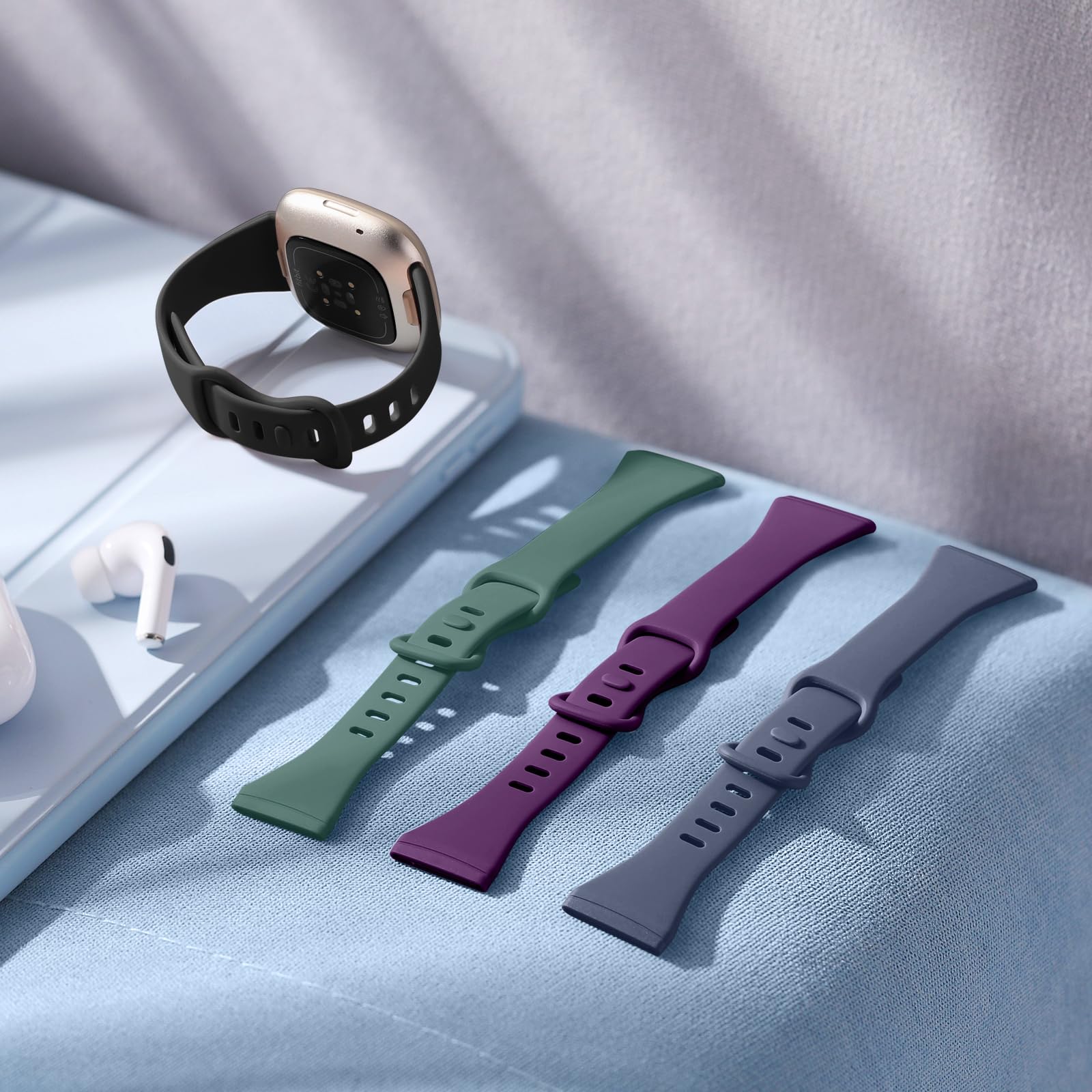 - ⏩【High-performance & Custom-made Silicone Material】Getino for versa 3/4 slim bands and sense 1/2 slim bands made of premium elastomer. Make bands eco-friendly, durable, waterproof, lightweight, flexibel and soft. No fading, No smell, No toxicity, No irritation, give you nice and comfortable wearing feeling