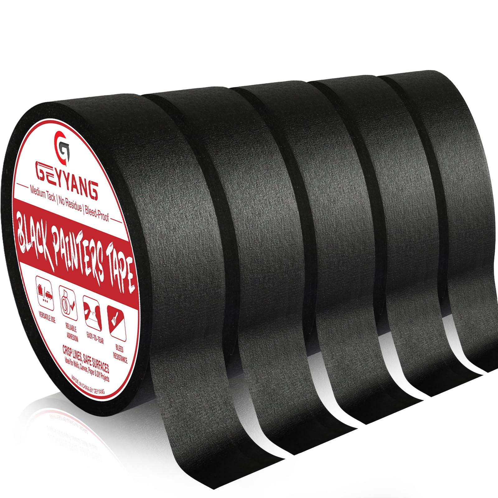 GEYYANG Black Painters Tape, 1 Inch x 55 Yards x 5 Rolls, Black Masking Tape for Painting, DIY Crafts, Home & Auto | No Residue, Multi-Surface Adhesion
