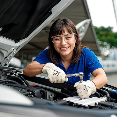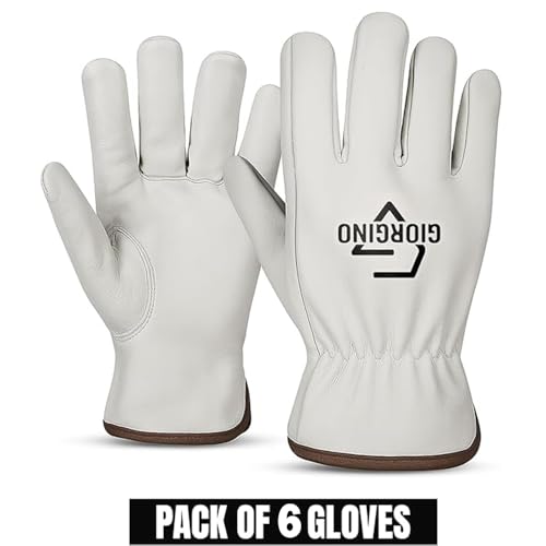 Giorgino Leather Work Gloves Men Pack of 6 Heavy Duty Cowhide Driver Gloves Safety Work Gloves for Gardening & Construction