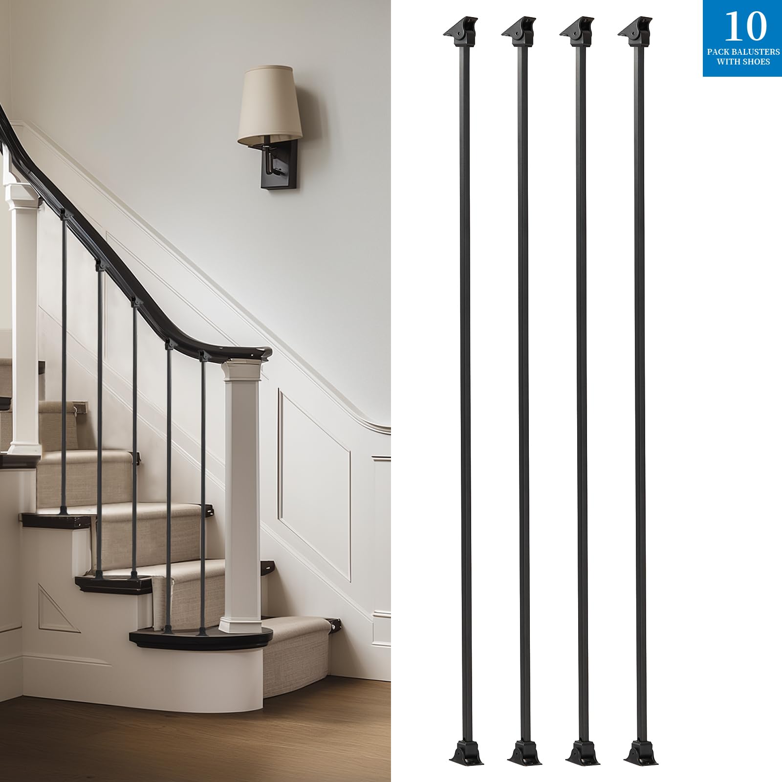 Gleefurny Balusters for Staircase Interior - Stair Railing Indoor Spindles, Iron Balusters Banister, Hollow Square, 1/2inch x 44inch, Plain Iron Balusters and Swivel Shoes (Pack of 10), Satin Black