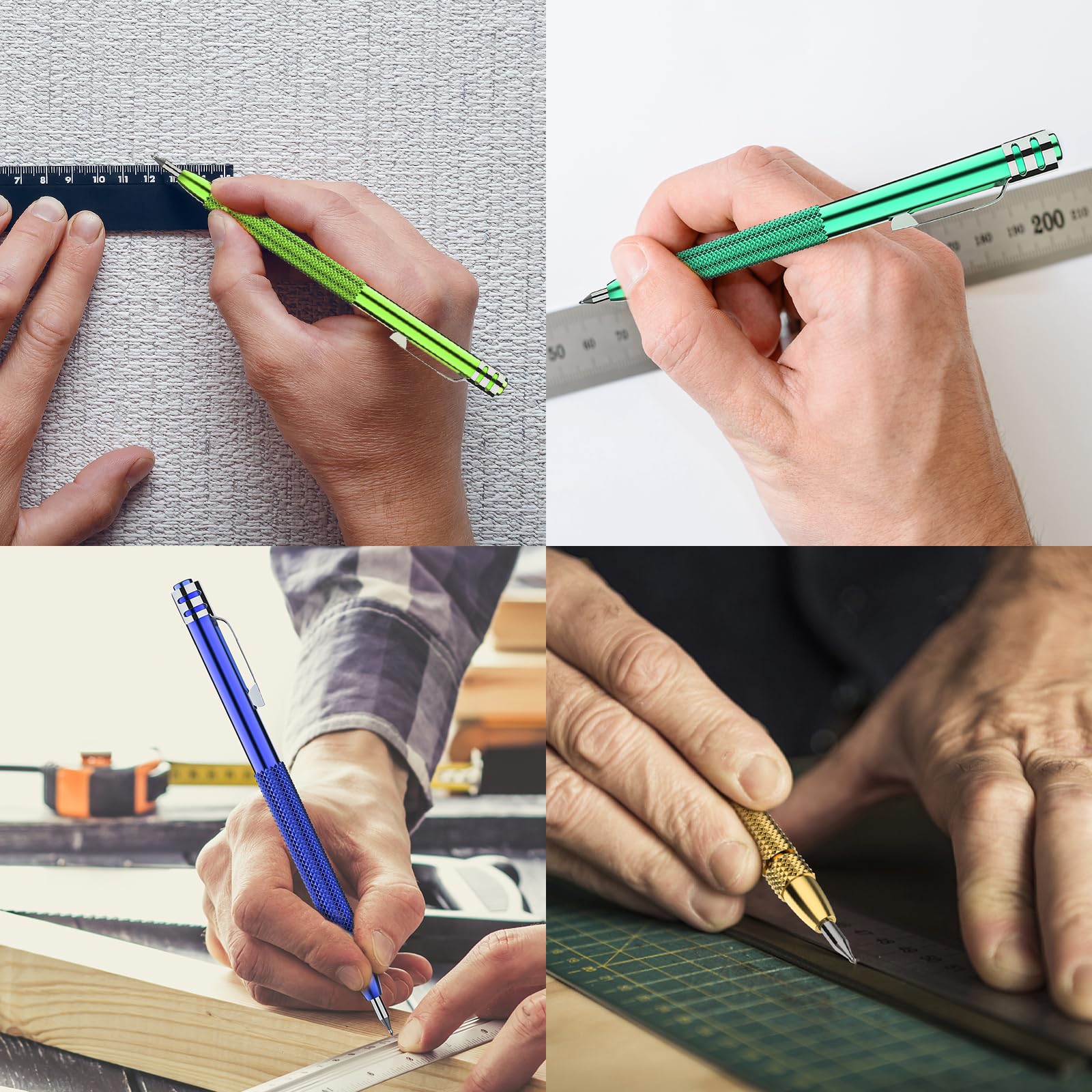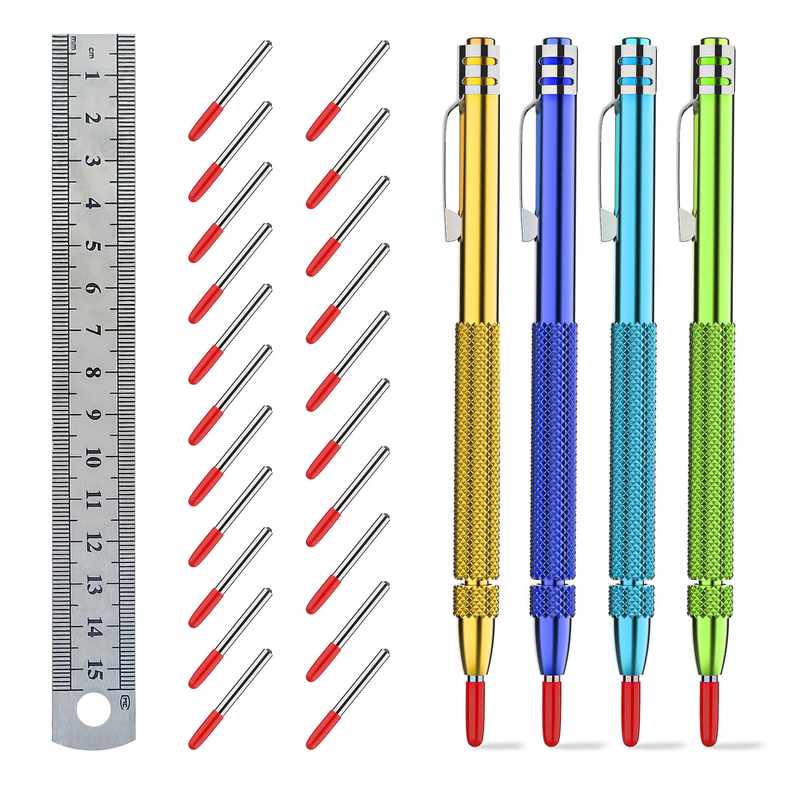 - 4 Pack Tungsten Carbide Tip Metal Scriber Tool With 21 Free Replacements Marking Tip And 6-Inch Ruler, Each Pen Tip Comes With A Protective Sleeve