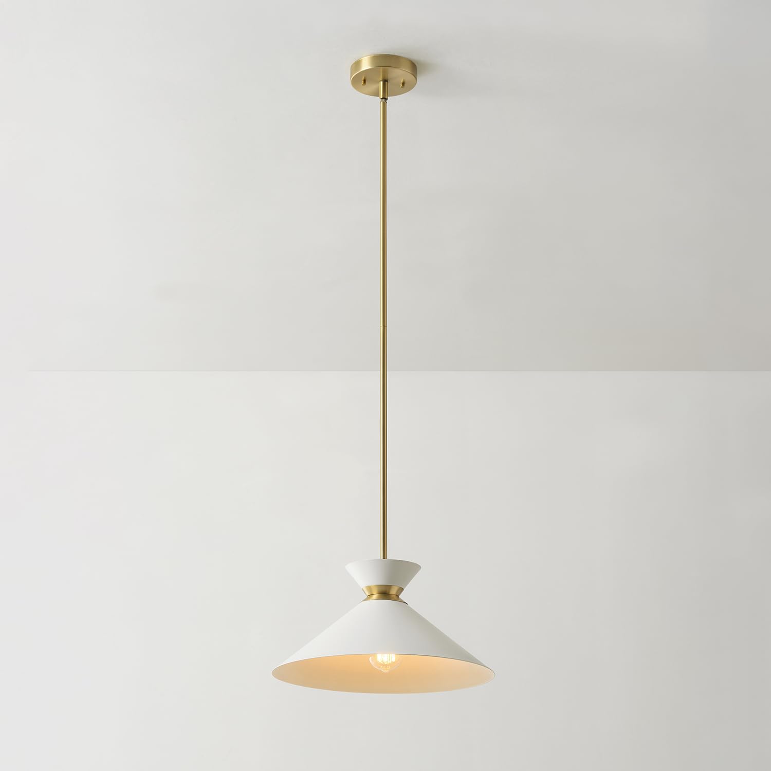 GLOBE Electric 67000197 1-Light Pendant Lighting, Matte Brass, White Tapered Shade, Ring Detail, Adjustable Hanging Height, Home Improvement, Kitchen, Dimmable
