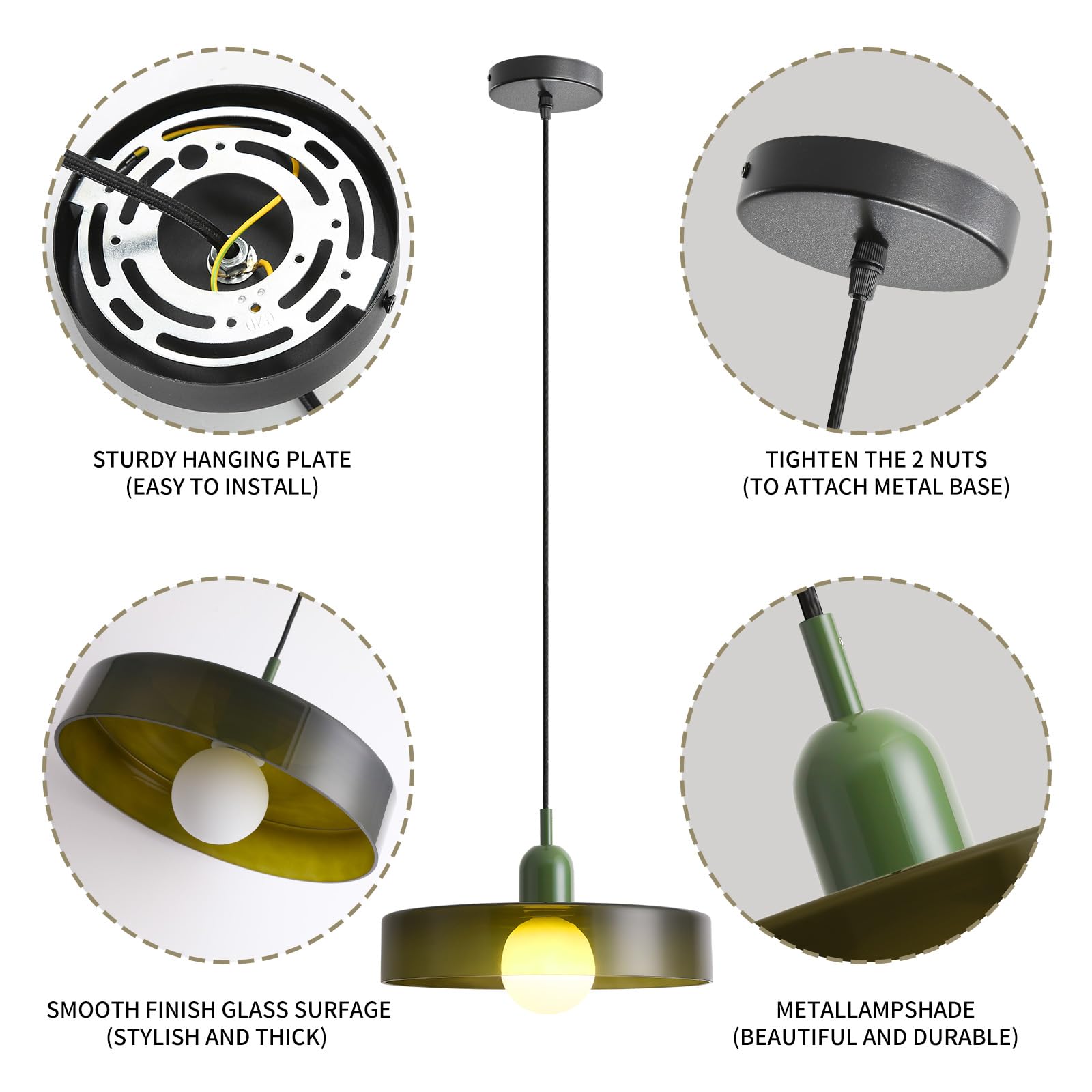 - š”ćEasy to Installćļ¼The pendant light fixture can be installed easily. All necessary accessories and clear installation instructions are included in the package