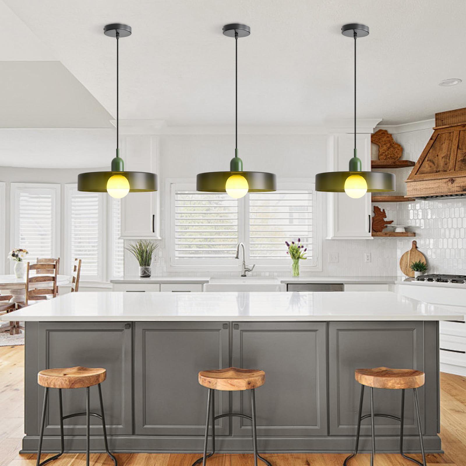 GloMuse Pendant Light Kitchen Island Hanging Light Mid Century Pendant Light Large Light Fixture for Living Room Green 13.78inch