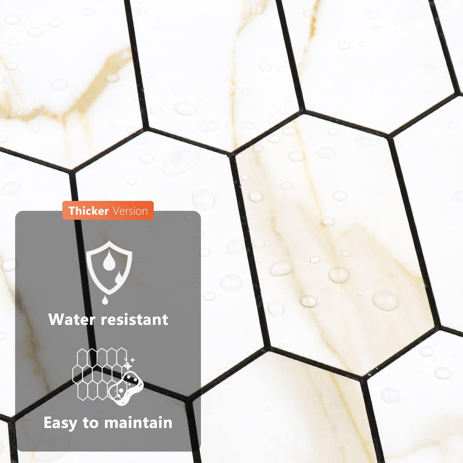 - Realistic Ceramic Tile Look: Glossy and shiny hexagon tile is scratch-resistant, high-impact and fade-resistant, creating a high-end look for you, long hexagon design can be installed vertically or horizontally.