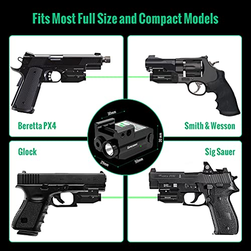 Gmconn Pistol Green Red Laser Light Combot, 350 lm Gun Flashlight with Strobe Mode Green Red Laser for Handgun,Compact Rail Mount Tactical Flashlight, USB Rechargeable Weapon for Pistols (Green Laser)