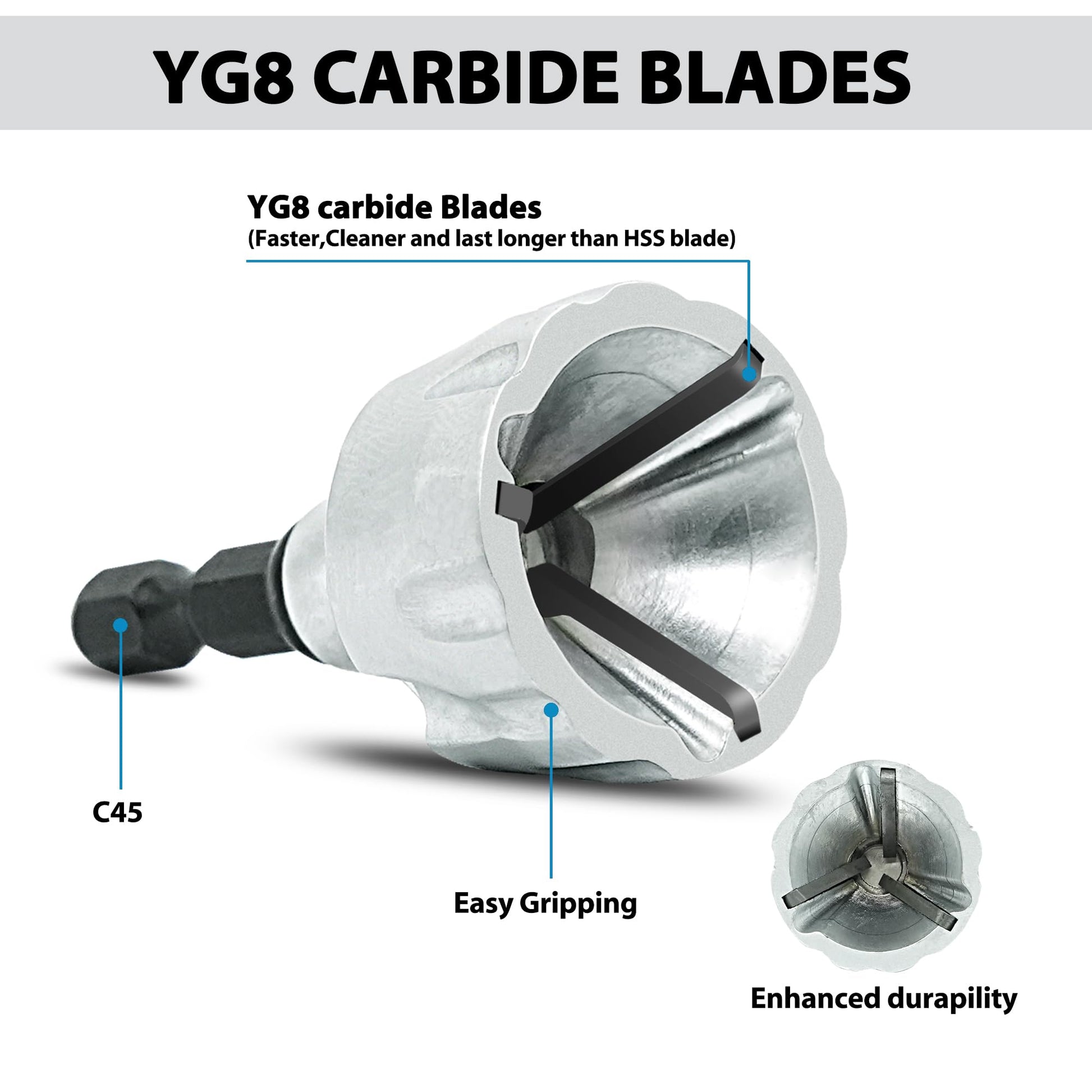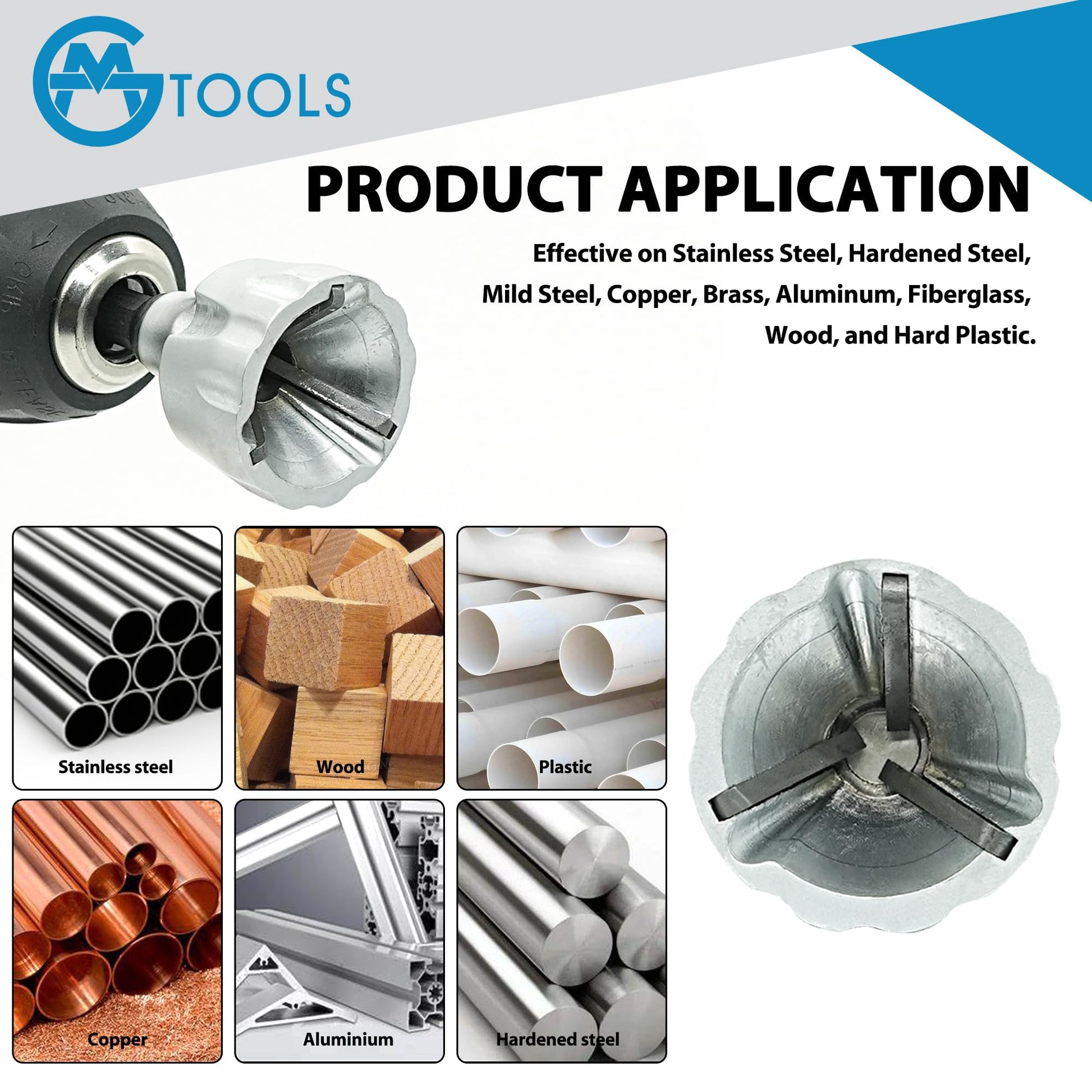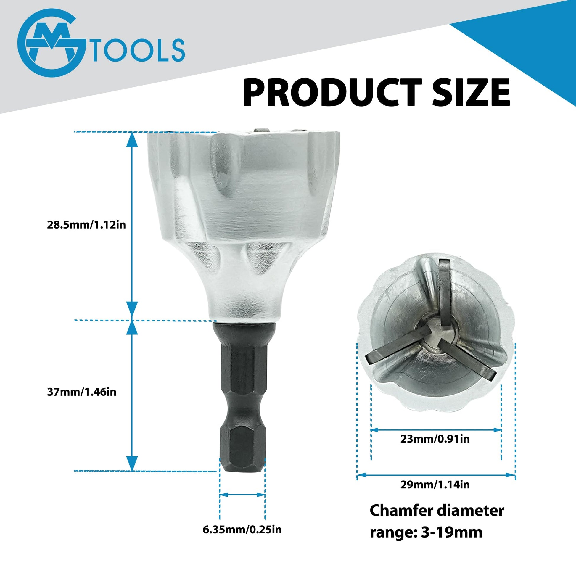 GMTOOLS Deburring External Chamfer Tool with YG8 Carbide Blade, Deburring Drill Bit Set, Remove Burr Tools with Quick Release Shank, Repair Tools for Damaged Bolts Fits for 1/8"- 3/4" (3mm-19mm)