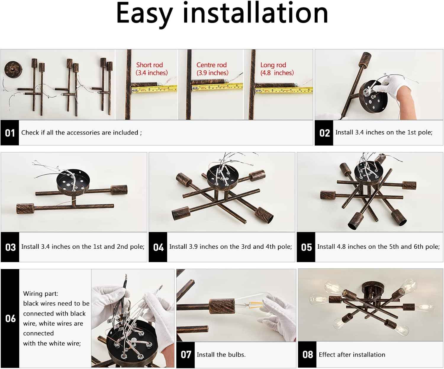- Chandelier size: 16.14 inches; total height of the lamp: 6.29 inches. Base type: E26 [not including bulb]. Watt: up to 60 watts(There is installation video on the page link of lamps for reference)