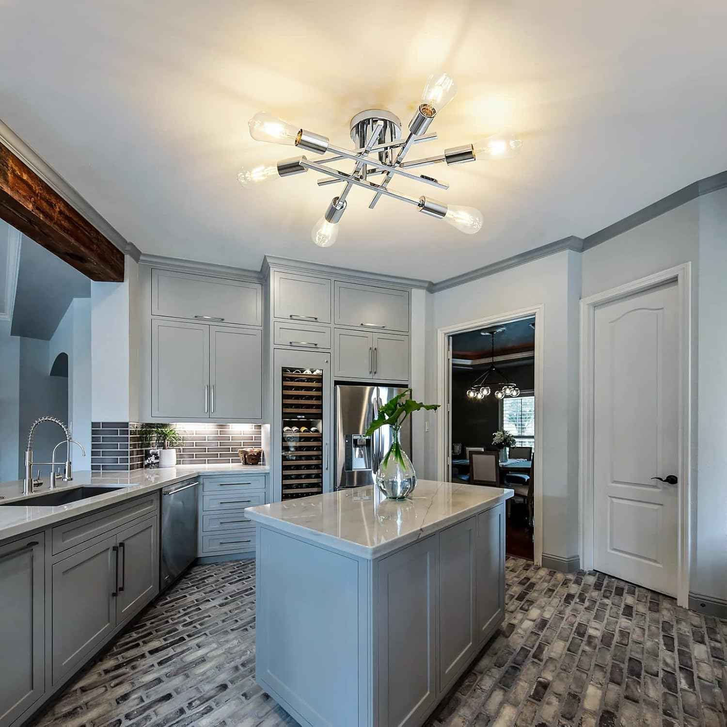 Gold Modern 6-Light Semi Flush Mount Ceiling Light Fixture - Vintage Sputnik Chandelier for Kitchen, Dining & Living Room